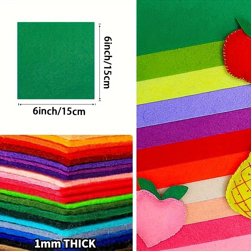 المواد: اللباد، غير المنسوجة اللون: متعدد الألوان حجم الورقة: 15*15 سنتيمتر (6*6 بوصة) 20*30 سنتيمتر (7.8*11.8 بوصة) السُمك: 1.0 ملم أجزاء فردية...