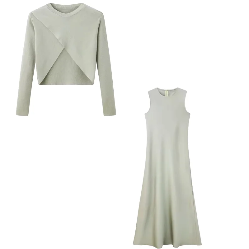 الصيف النساء أزياء فستان طويل أناقة لينة الحرير الساتان سترة اللباس محبوك أعلى مباراة مجموعة ماكسي طول امرأة شيك اللباس مجموعة
