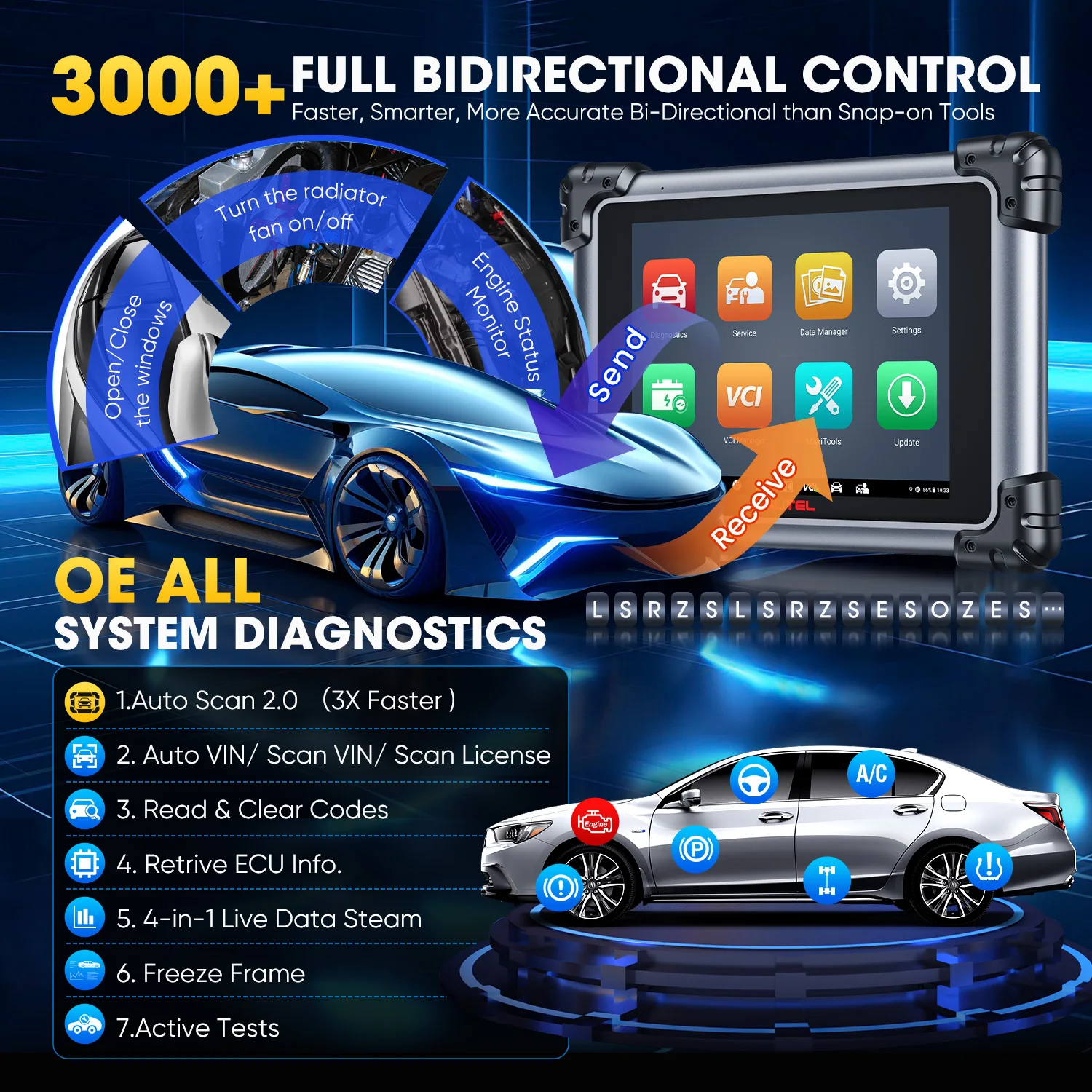 2025 Autel Falgship Elite II PRO able to perform Bi-directional Control (Active test) to control various sub-systems or components to perform active tests (also known as component tests). Such as turn f.uel pump on/off, cycling the A/C Clutch on/off, EVAP test, windows, doors, sunroofs, wipers, to determine the integrity, monitor the operations to check whether they are functioning properly or not and quickly locate the fault causes.