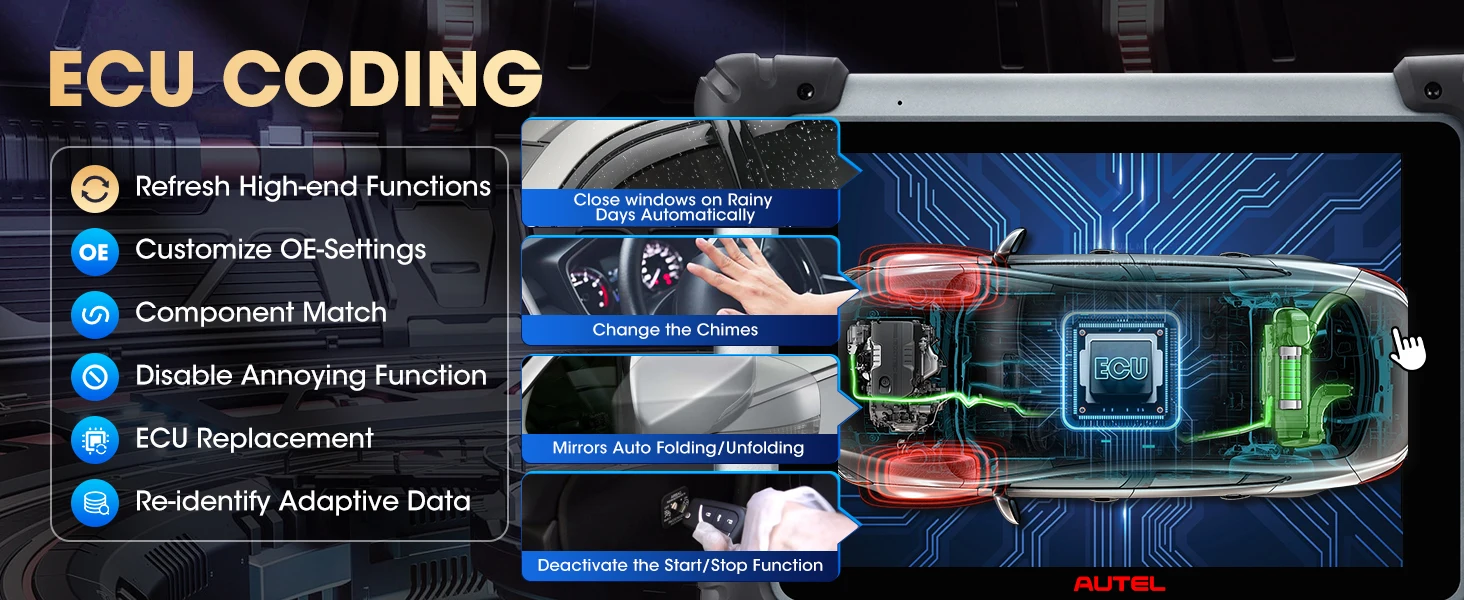 【Advanced ECU Coding】Autel Elite ii pro with advanced ECU coding functions, you are allowed to refresh modules like ECM, TCM, BCM etc for BMW/ BENZ/VW/ AUDI/ SKODA etc. You can also disable useless functions, unlock advanced functions. Autel Elite2 pro can directly pass-thru the gateway to access data for coding to improve vehicle fuel efficiency, reduce power loss, improve the durability of mechanical parts.