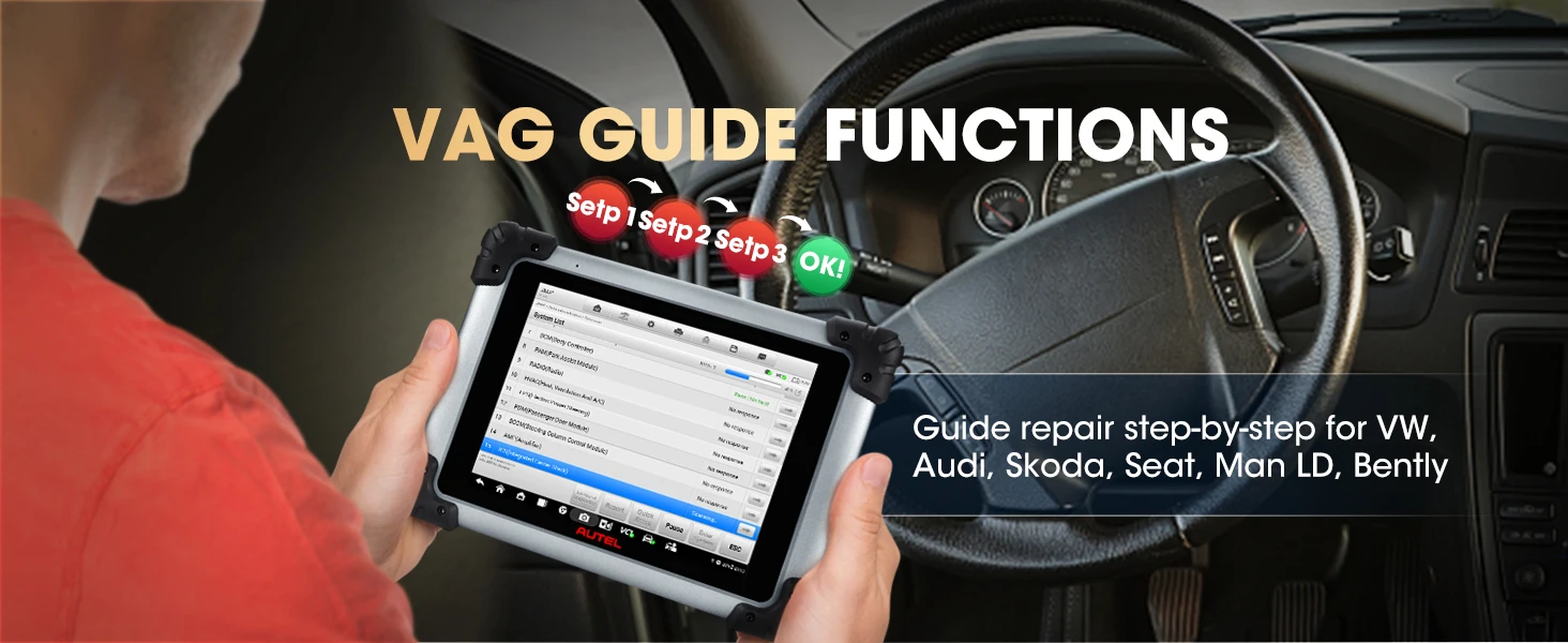 8.VAG Guided Functions: For VAG vehicles, there are professional VAG guidance steps, you can follow the screen instructions repair vehicles step-by-steps.