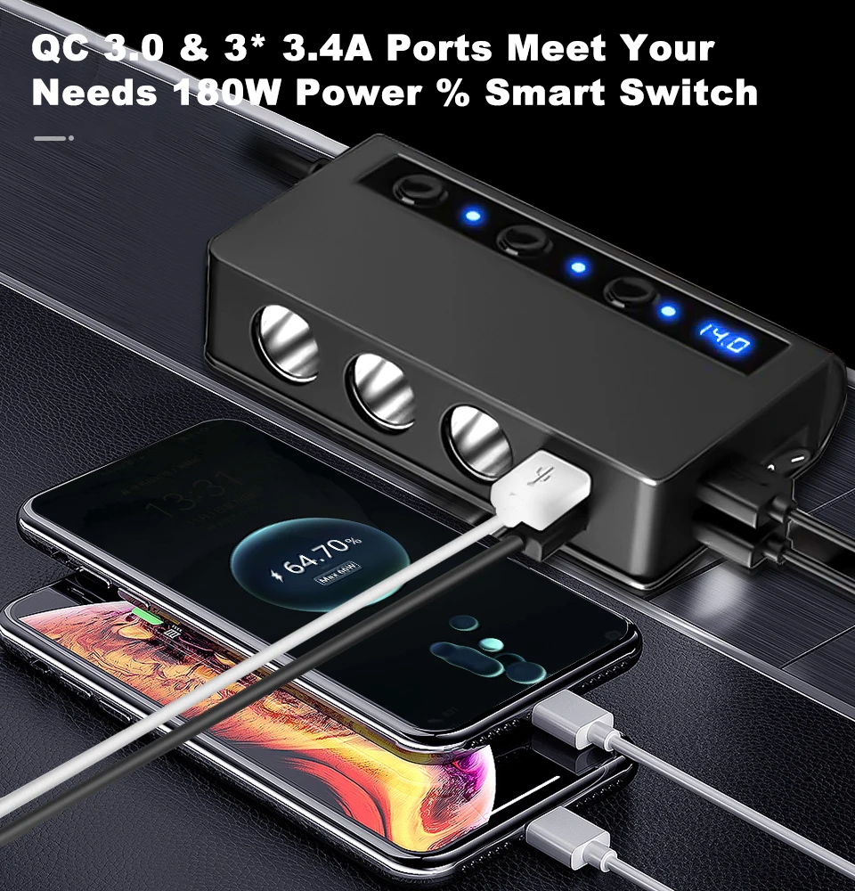 ● بفضل التصميم والجودة الممتازة، فإن مقسم الطاقة متعدد الوظائف هذا مناسب لجميع السيارات 12 فولت/24 فولت ويمكنه تلبية احتياجاتك في رحلة الطريق.