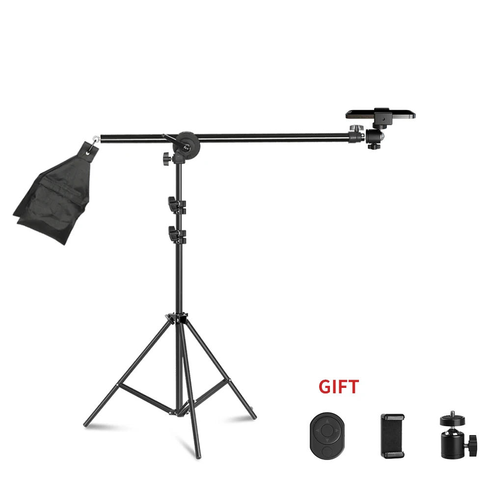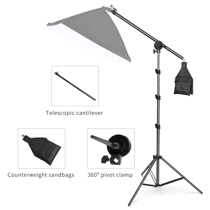 SH Photo Studio 2 متر 2 في 1 حامل إضاءة مع ذراع بوم 1.4 متر وحقيبة رمل فارغة لدعم سوفتبوكس الإضاءة التصوير ترايبود