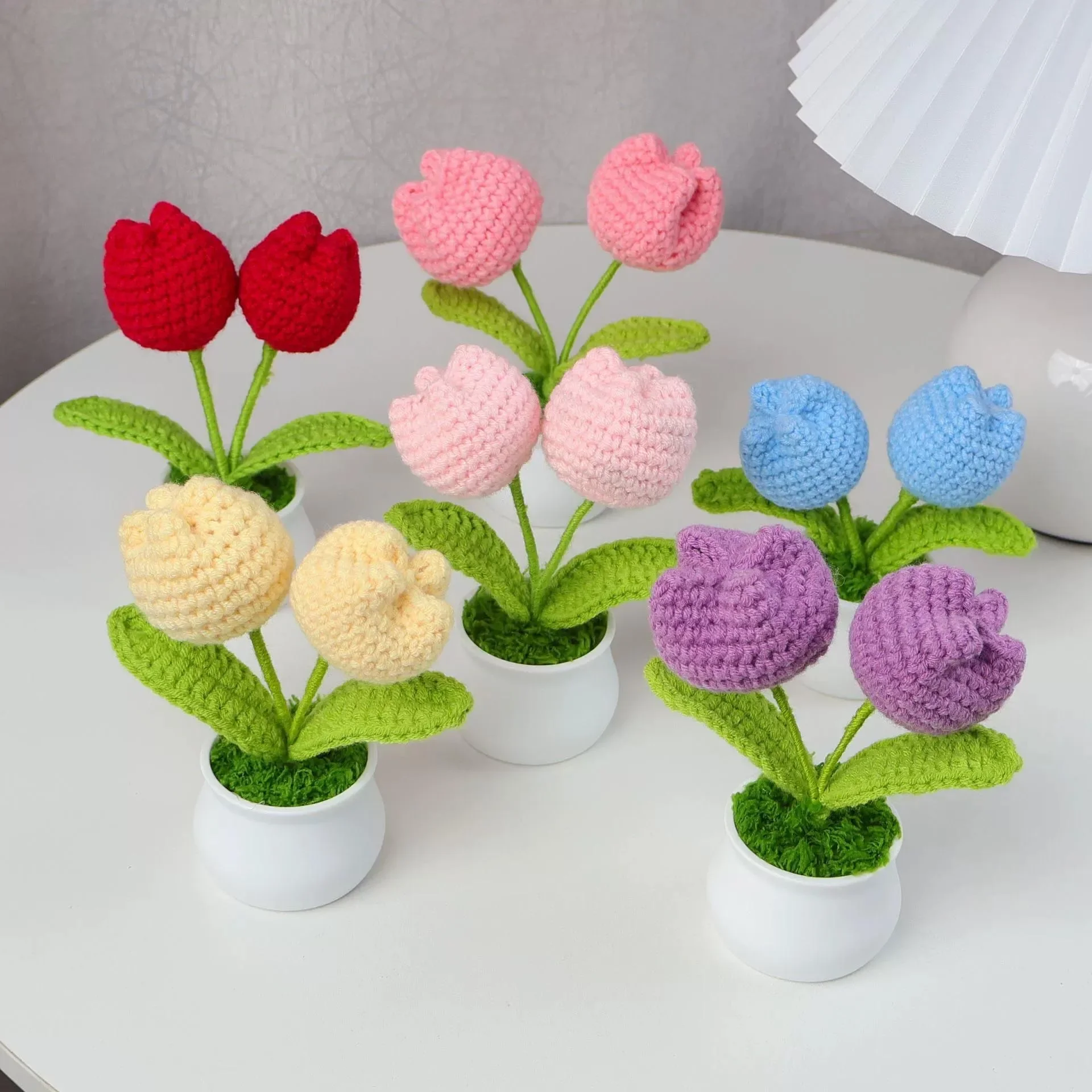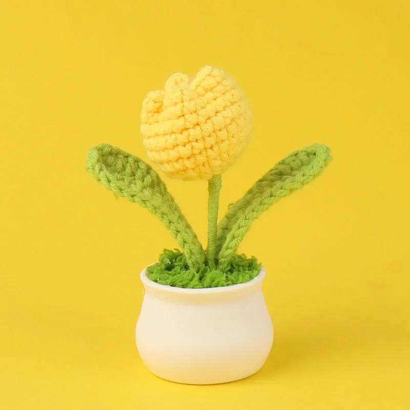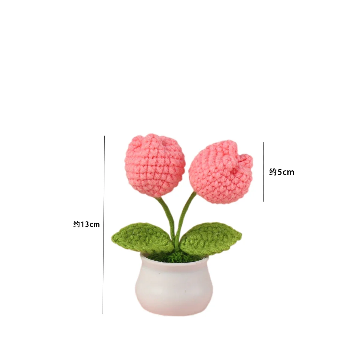الكروشيه زهرة التوليب بوعاء الإبداعية اليدوية زهور التوليب الانتهاء من النبات سطح المكتب سيارة الكروشيه