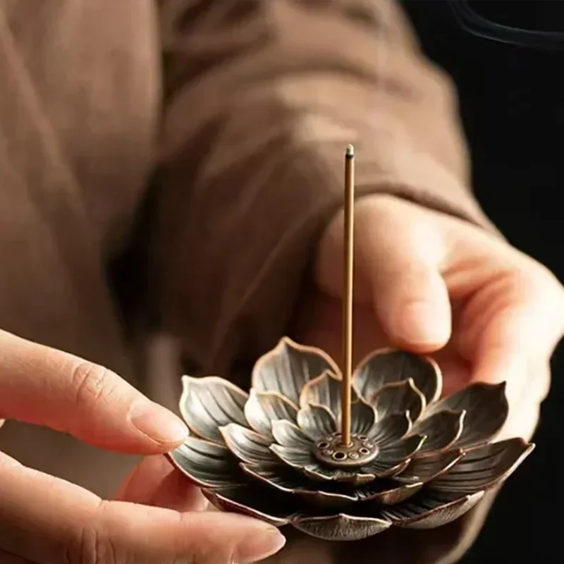 سبيكة زهرة اللوتس مقعد معطر المحمولة جوس عصا البخور لفائف ثنائي الغرض متعدد الطبقات قاعدة العتيقة المنزل Superlatives مبخرة