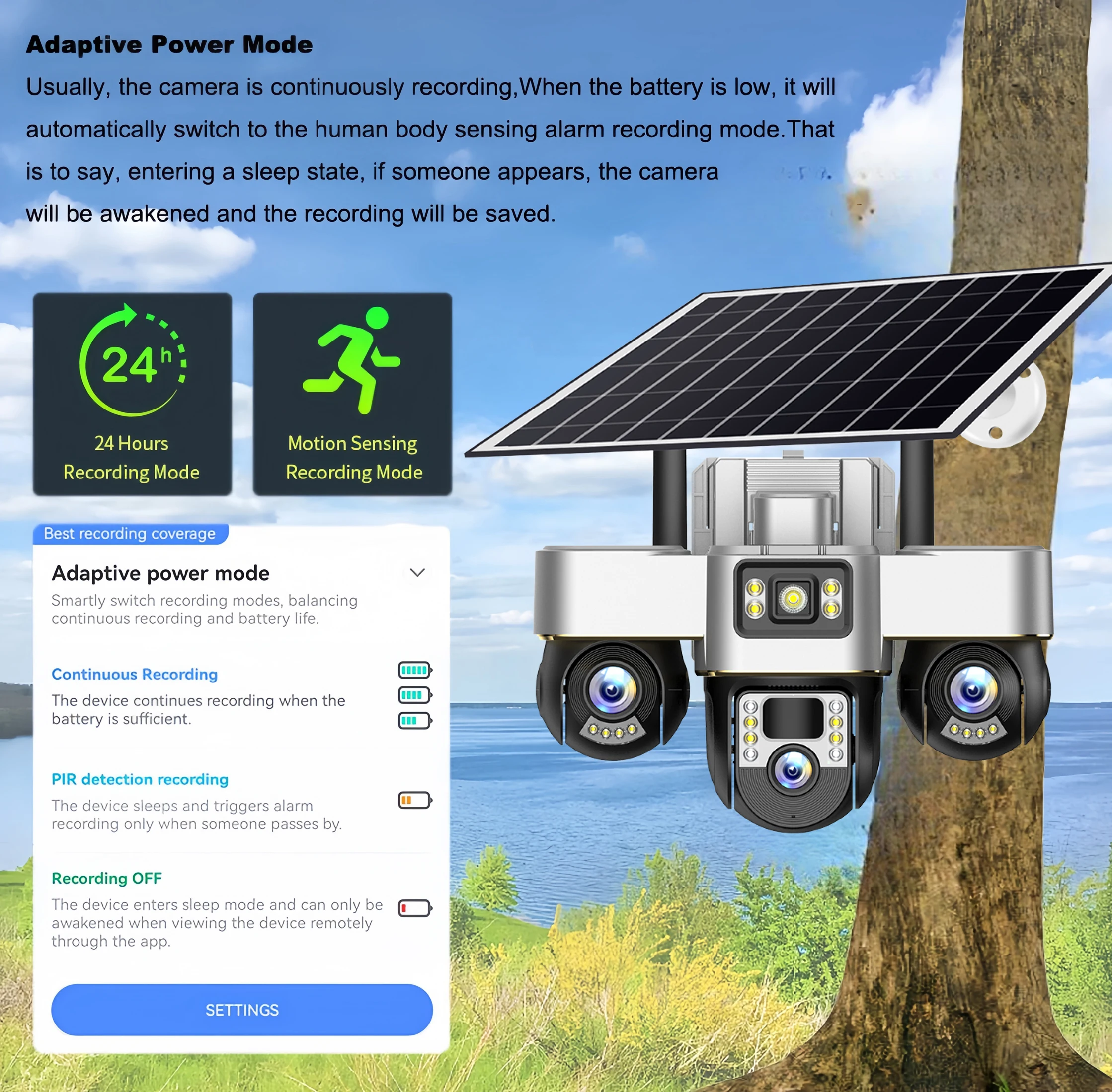 تحتوي هذه الكاميرا الشمسية على ثلاثة أوضاع عمل. نقترح عليك وضع الطاقة المنخفضة.