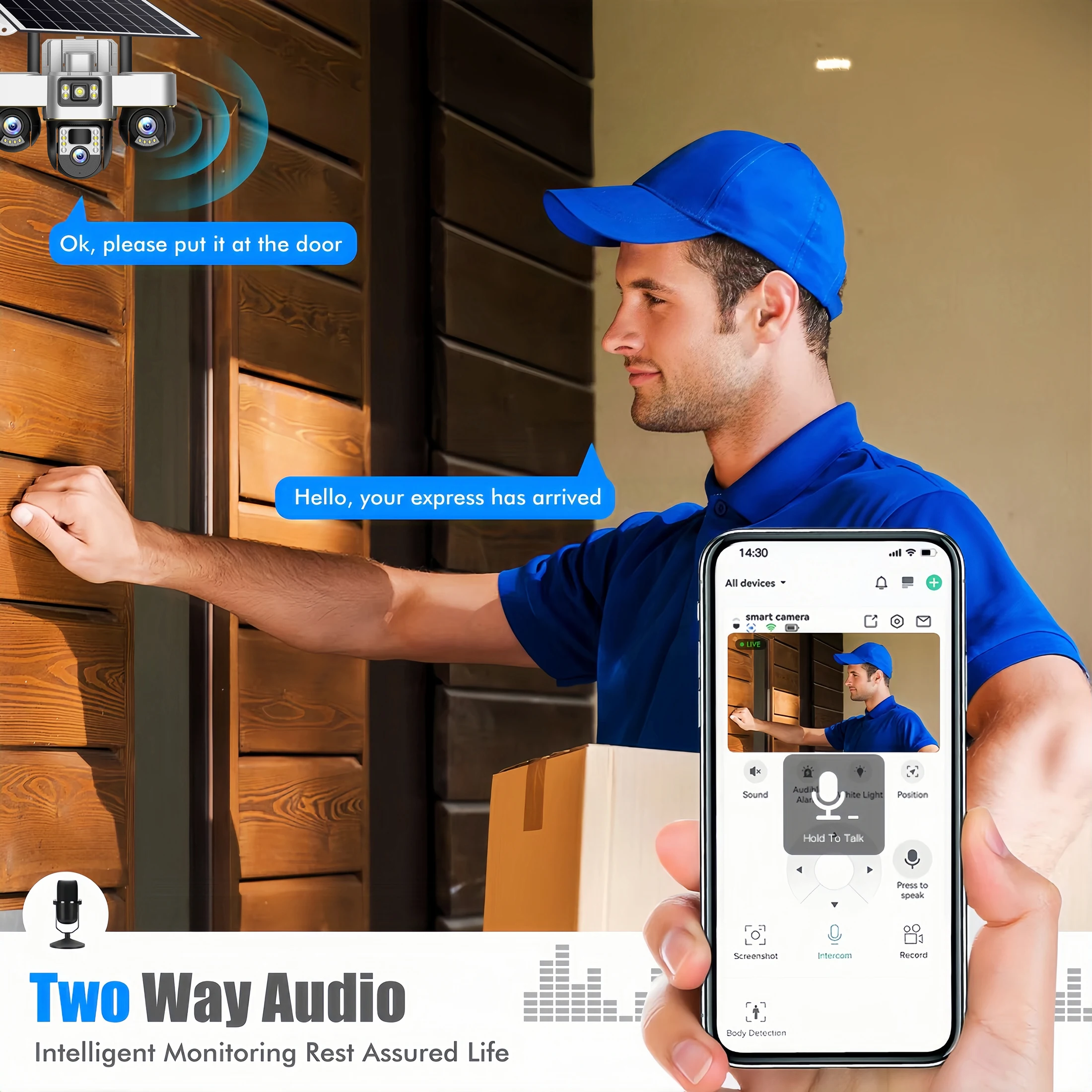 ميكروفون ومكبر صوت مدمجان / مكبرات صوت جديدة مخصصة بصوت عالٍ؛ يمكنك التحدث إلى أي شخص بالقرب من الكاميرا (تحذير شخص ما من مغادرة منزلك).