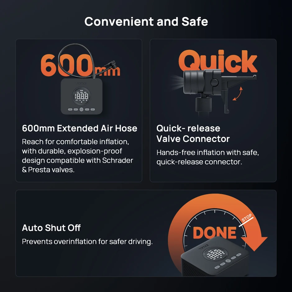 مع تطبيقات متعددة، يعد ضاغط الهواء اللاسلكي 70mai 2 مثاليًا للاستخدام المهني والشخصي، متى وأينما كنت في حاجة إليه.