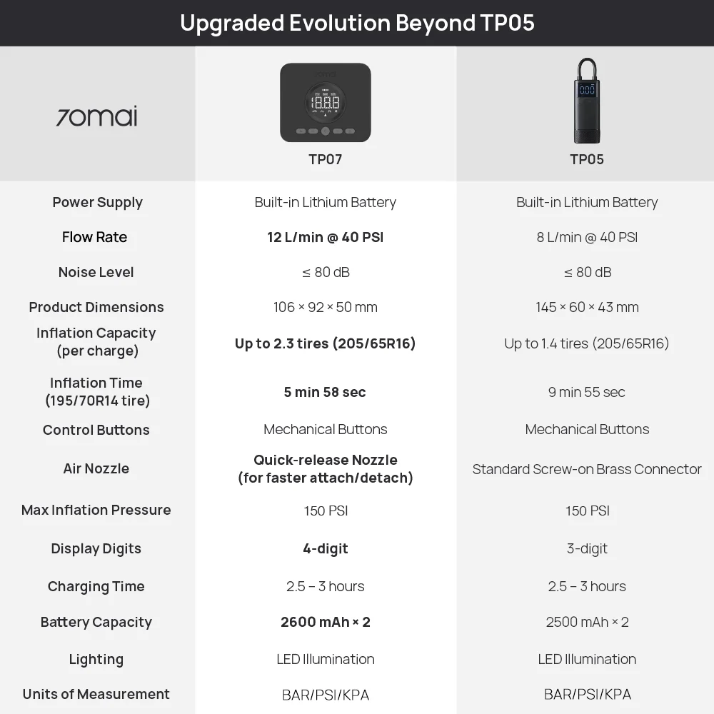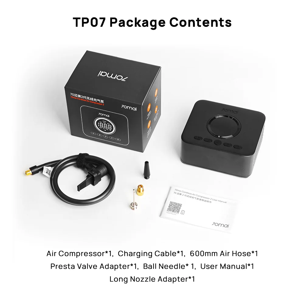70mai ضاغط الهواء اللاسلكي 2 TP07 سيارة صغيرة الإطارات منفاخ سيارة كهربائية مضخة هواء مضخة إطارات السيارات 70mai TP07 سيارة دراجة نارية دراجة الكرة