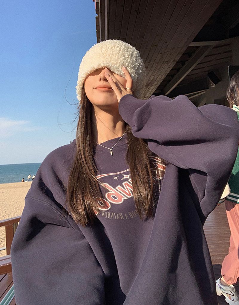 معطف قطني فضفاض عشوائي للنساء في الخريف والشتاء، قميص أساسي ب_ROUND cổ طويل الأكمام، أعلى، كوري.