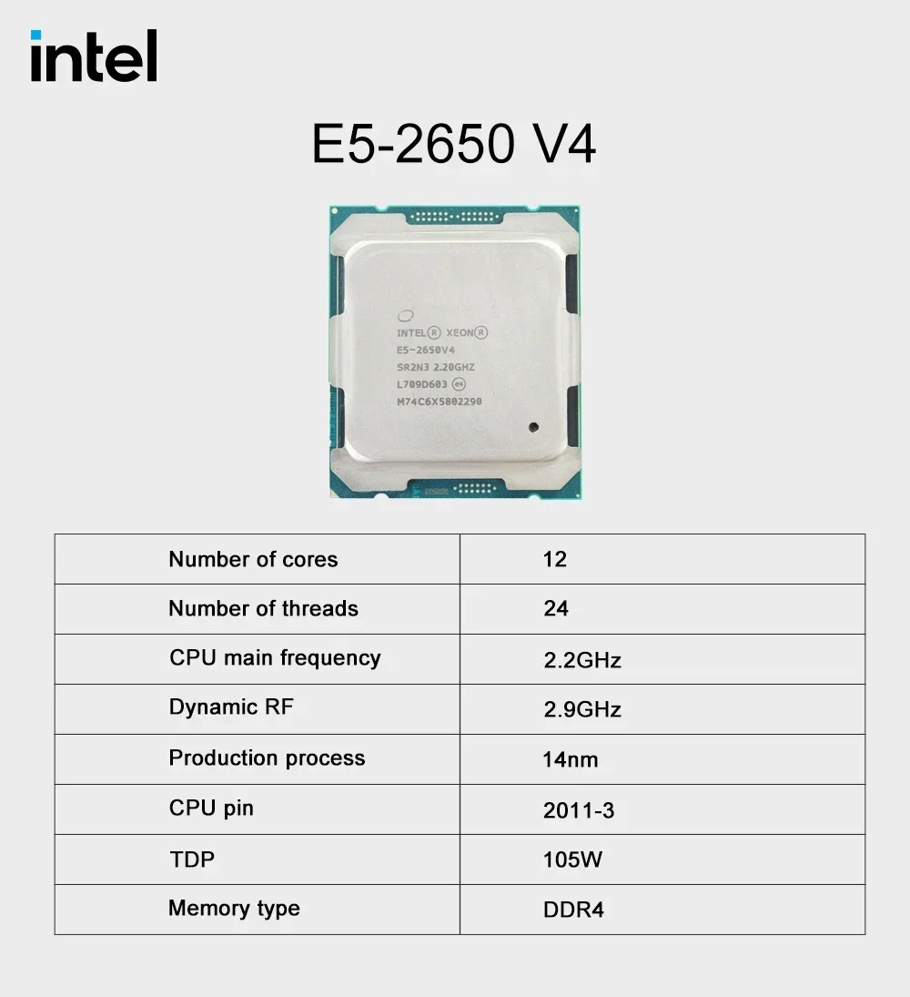 وحدة المعالجة: سلسلة المعالج: إنتل زيون رقم الموديل: E5 2650 V4 سرعة المعالج: 2.2 جيجا هرتز الحد الأقصى للتردد الأساسي: 2.9 جيجا هرتز مقبس...