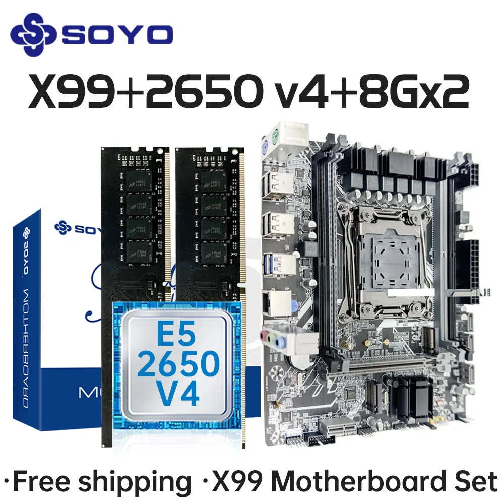 مجموعة اللوحة الأم الجديدة من SOYO مع LGA2011-3 Intel E5 2650 V4 CPU DDR4 16GB (2*8GB) 2133MHZ ذاكرة الوصول العشوائي NVME M.2 SATA