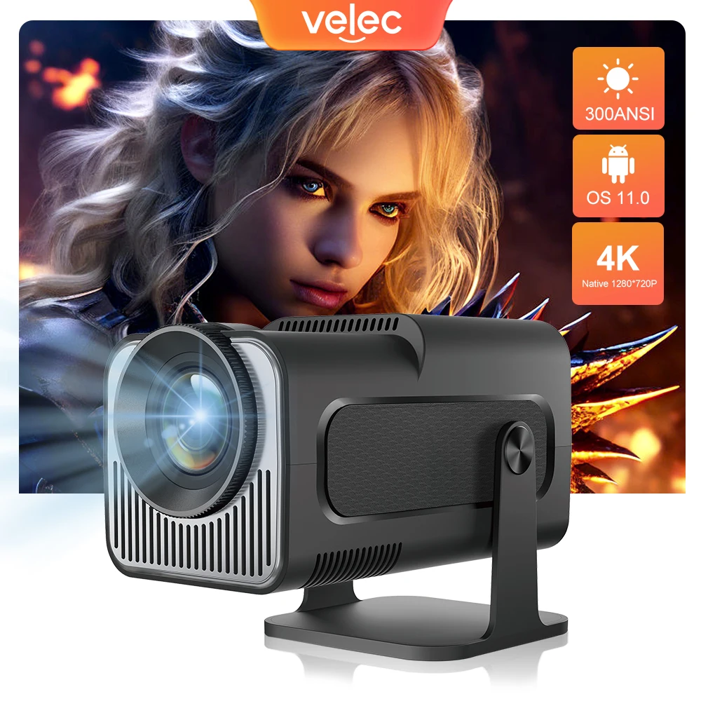 جهاز عرض صغير Velec HY320 أصلي حديثًا 720P أندرويد 11 4K 300ANSI Wifi6 BT5.0 منزلي خارجي 180 ° جهاز عرض قابل للدوران HY320 MINI