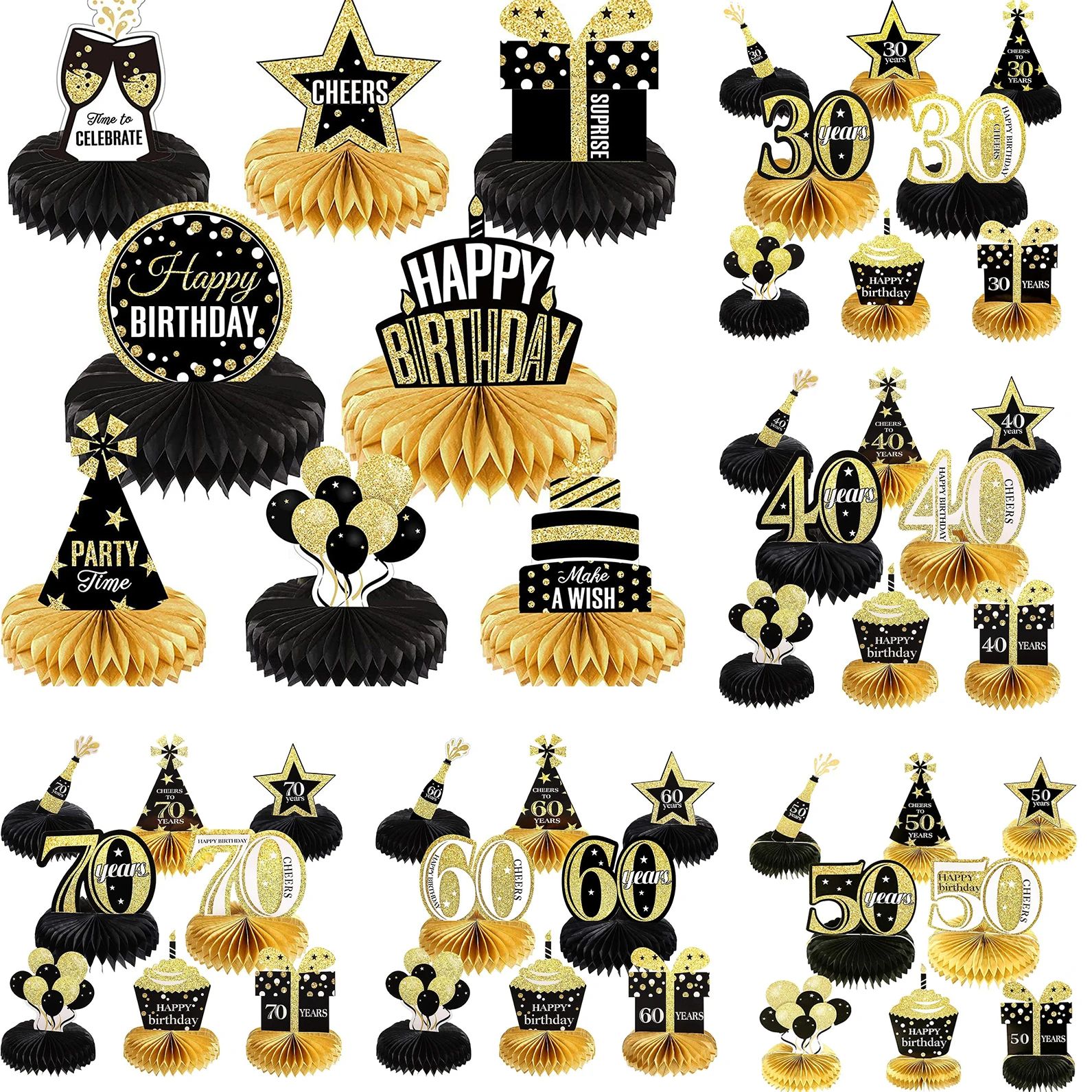 1 مجموعة سوداء 18th 30th 40th 50th 60th 70th 80th سنة سطح المكتب العسل الحلي صور الدعائم لديكور حفلة عيد ميلاد سعيد