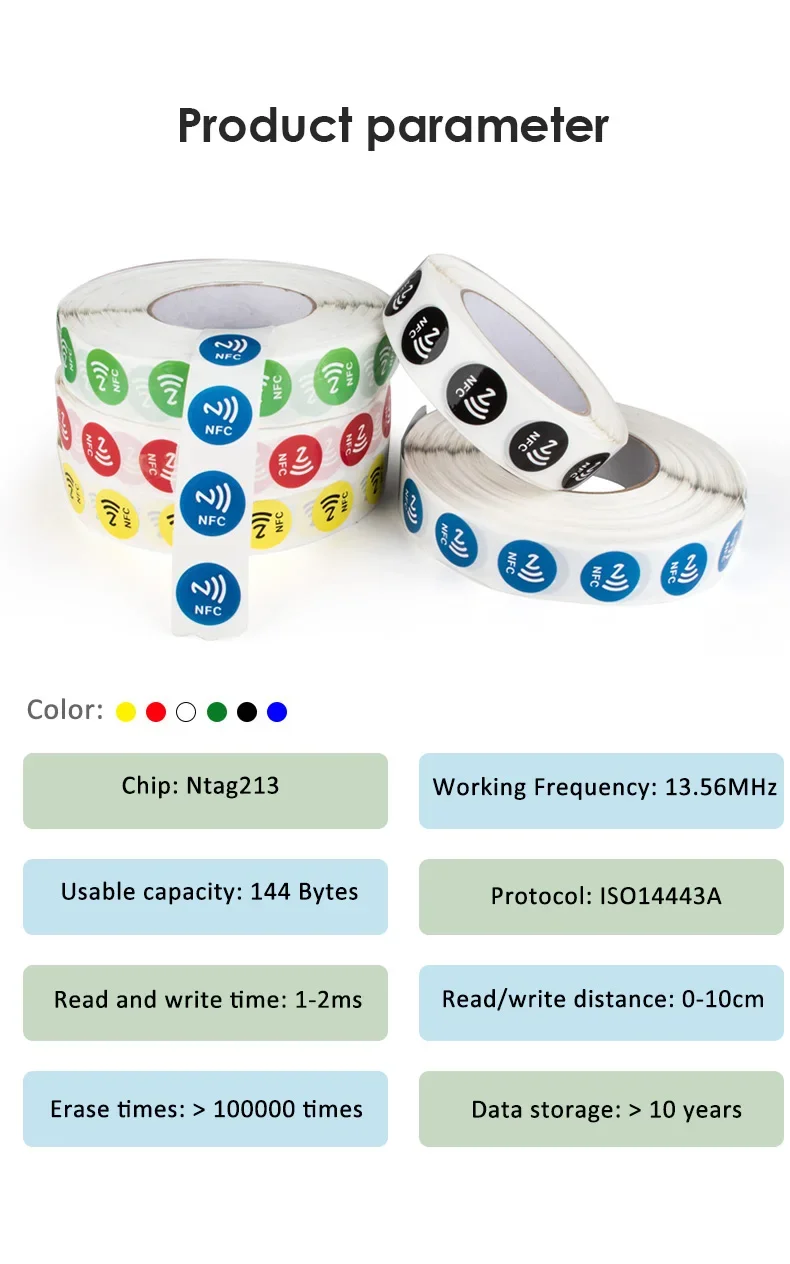 • متوافق مع هواتف NFC:هذه الملصقات متوافقة مع هواتف NFC، مما يجعل من السهل استخدام البيانات ونقلها.