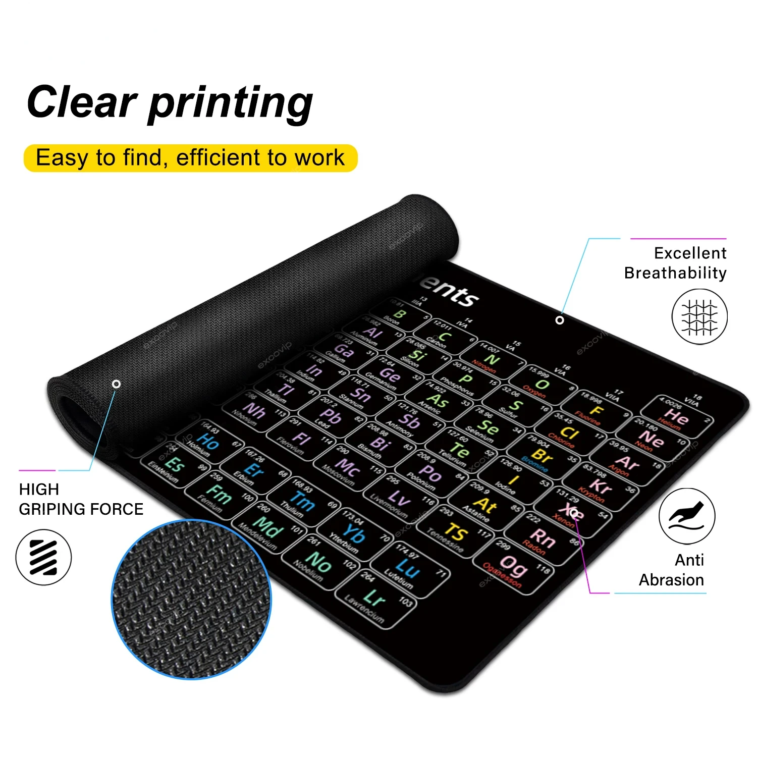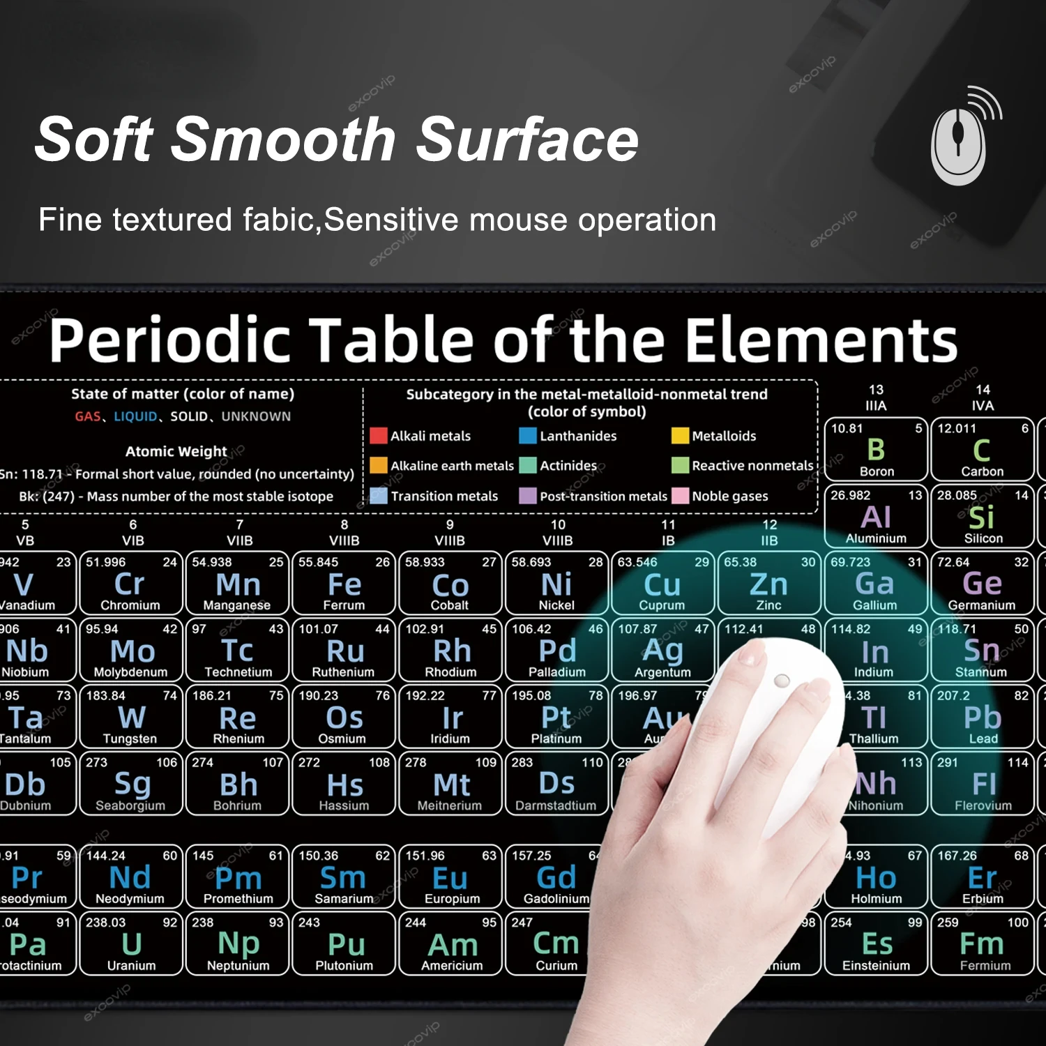 الجدول الدوري للعناصر، لوحة ماوس كبيرة للوحة مفاتيح الألعاب مع حافة مخيطة، قاعدة مطاطية غير قابلة للانزلاق، حصيرة مكتبية