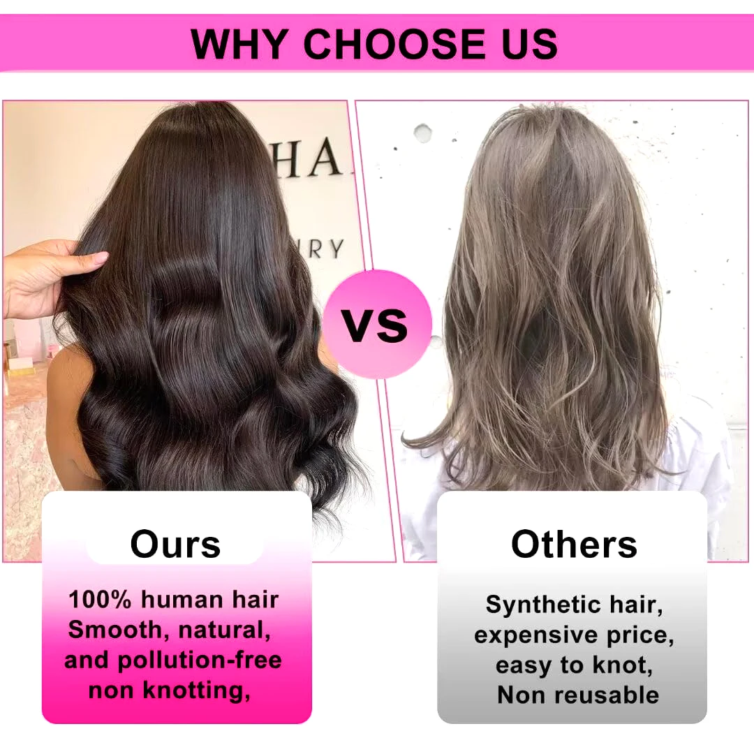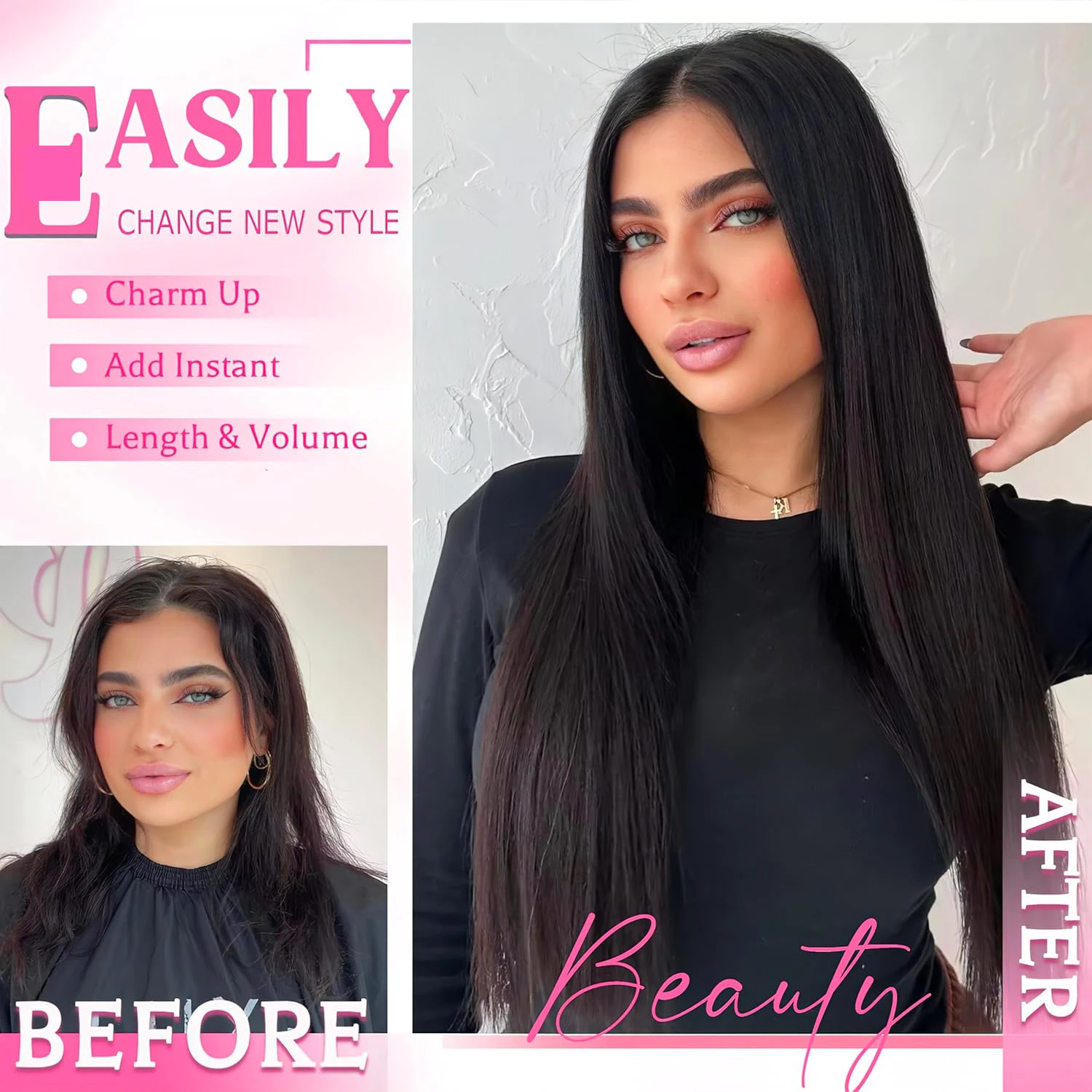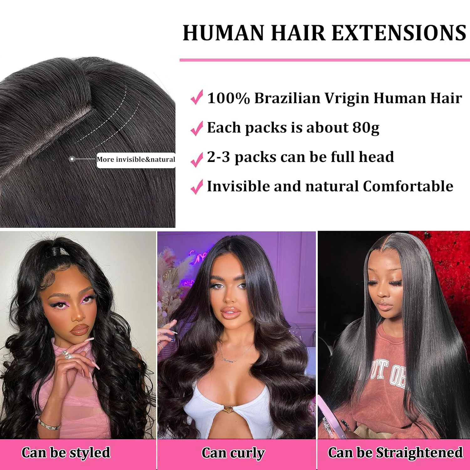 وصلات شعر بمشبك مستقيم، مشبك شعر بشري ريمي برازيلي غير مرئي بدون خياطة، أسود طبيعي للنساء