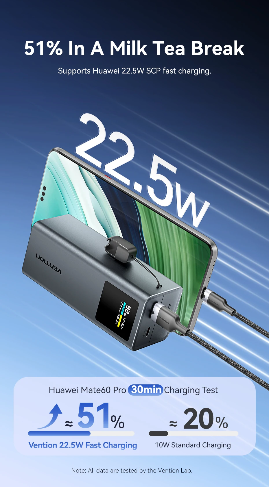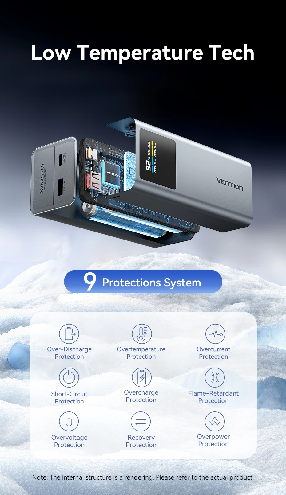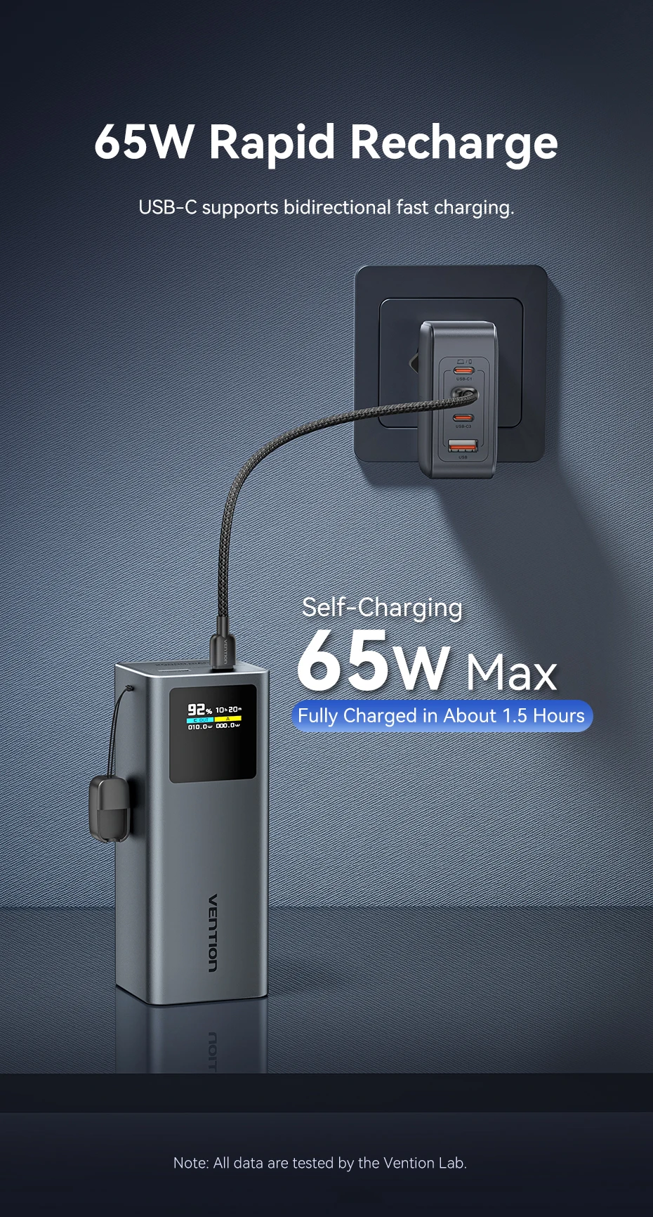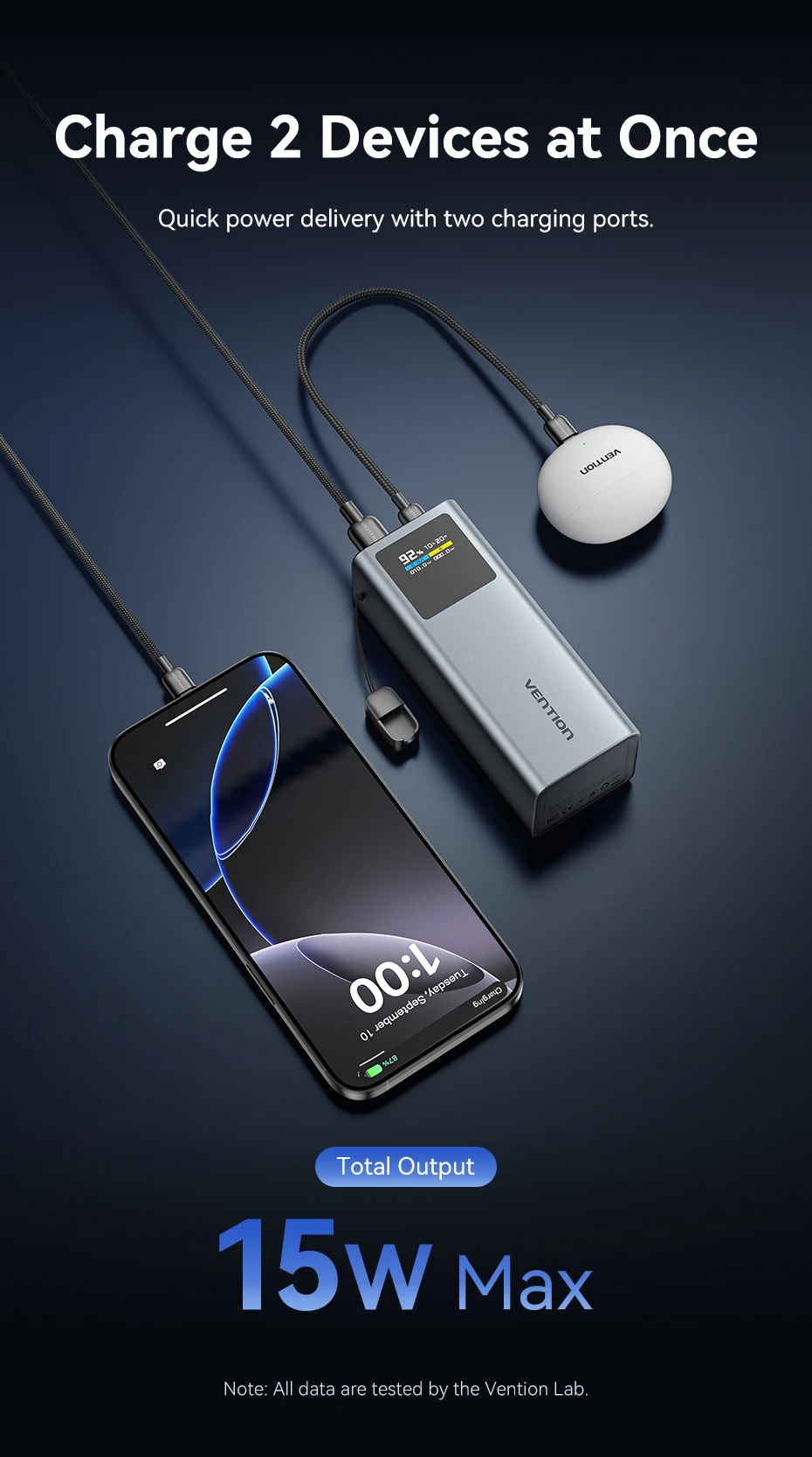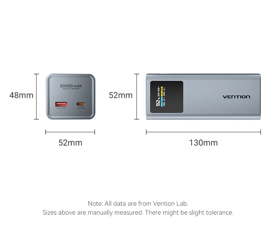 بنك طاقة Vention 20000mAh 100W Type C PD شحن سريع Powerbanks شاحن بطارية خارجي محمول لأجهزة الكمبيوتر المحمول iPhone MacBook