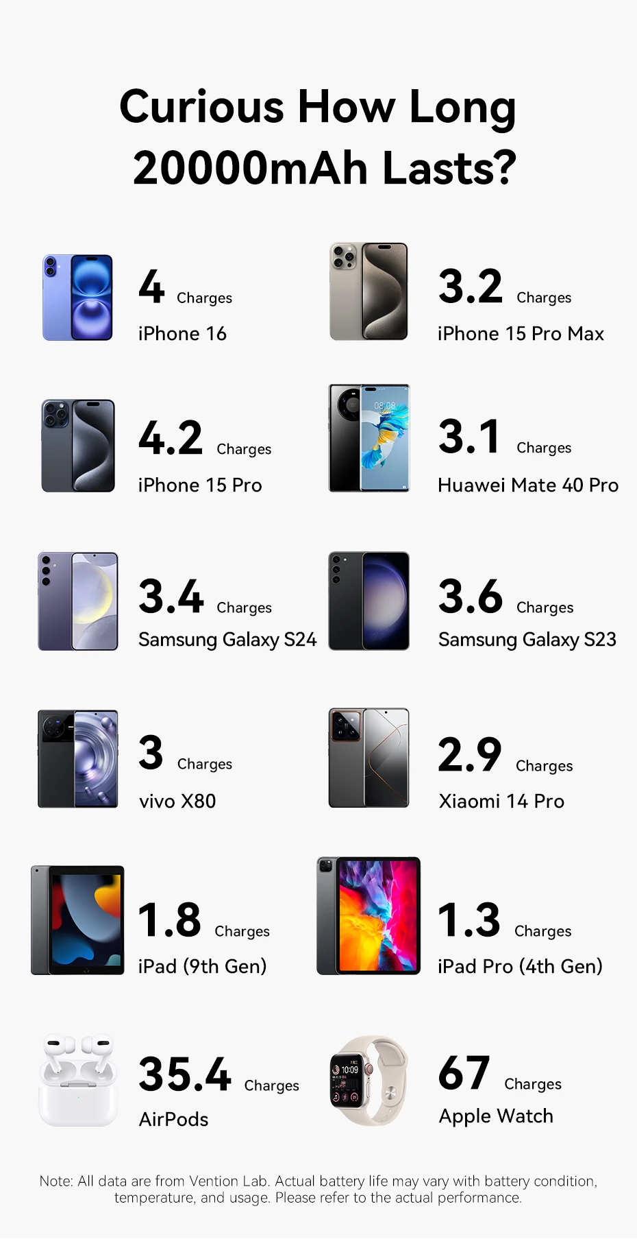 باور بانك 20000 مللي أمبير، شحن سريع 100 واط