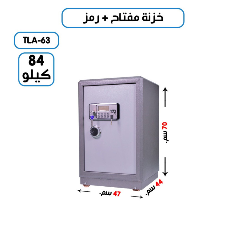 خزنة فولاذ أمنية مقاومة للحرائق مفتاح + رمز رمادي وزن 84 كيلو