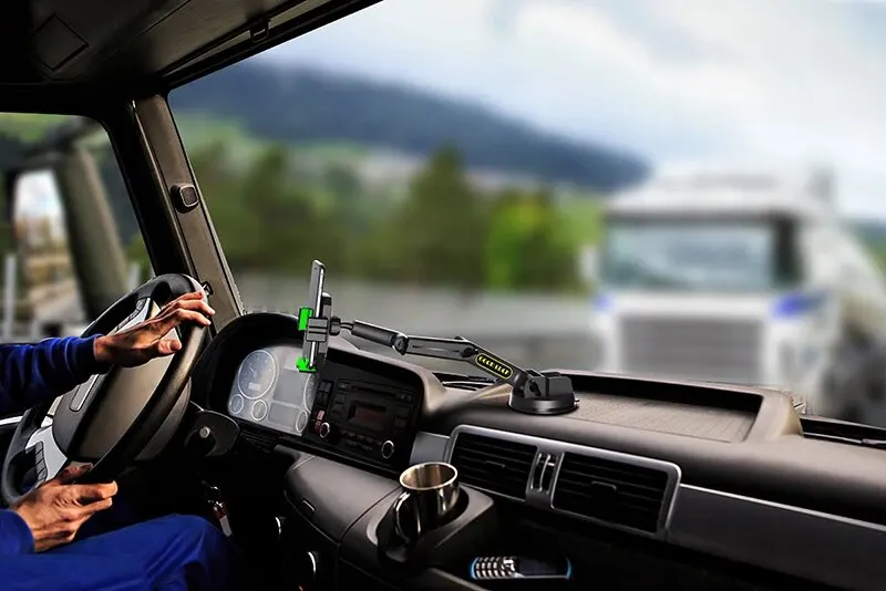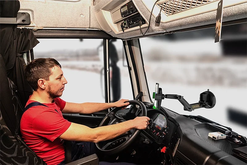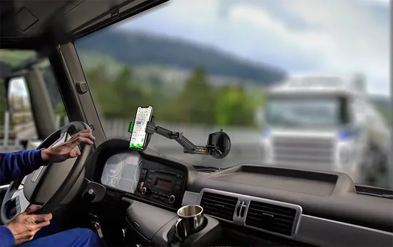 حامل هاتف الشاحنة حامل هاتف محمول عالي التحمل للزجاج الأمامي للوحة القيادة بذراع طويل 16.9 بوصة، كوب شفط فائق ومستقر