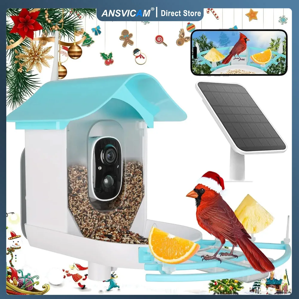 وحدة تغذية الطيور مع كاميرا AI تحديد أنواع الطيور تعمل بالطاقة الشمسية وتسجيل فيديو تلقائي في الفناء الخلفي للإشعارات الفورية لمحبي الطيور