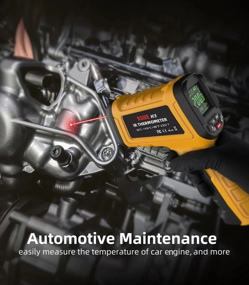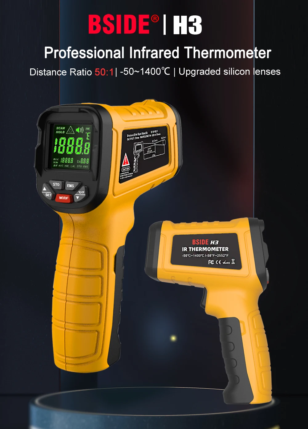BSIDE H3 مقياس حرارة احترافي بالأشعة تحت الحمراء-50 ~ 1400C مقياس درجة حرارة رقمي مقياس حرارة ليزر غير ملامس D:S = 50:1.