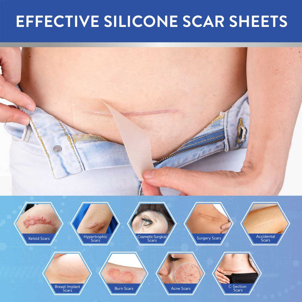1 لفة احترافية من صفائح الندبات المصنوعة من السيليكون - نوع شرائط الندبات السيليكون القابلة لإعادة الاستخدام لـ Keloid، C-القسم، الجراحة، حرق