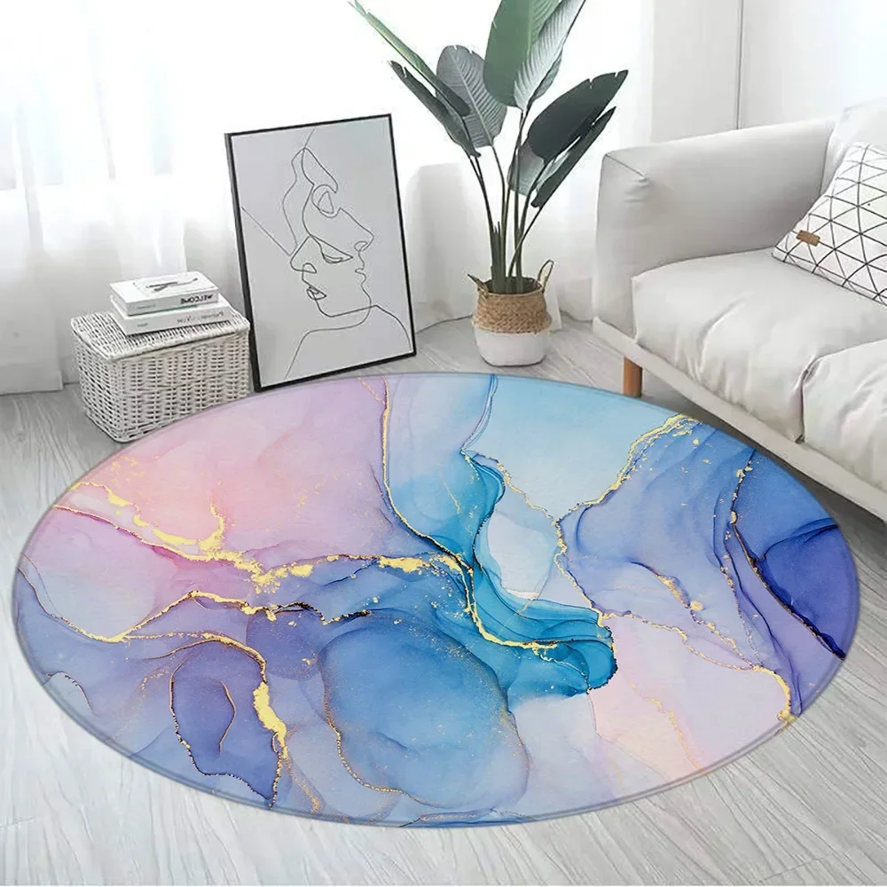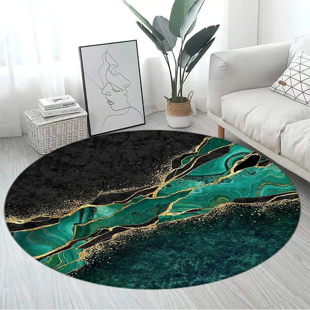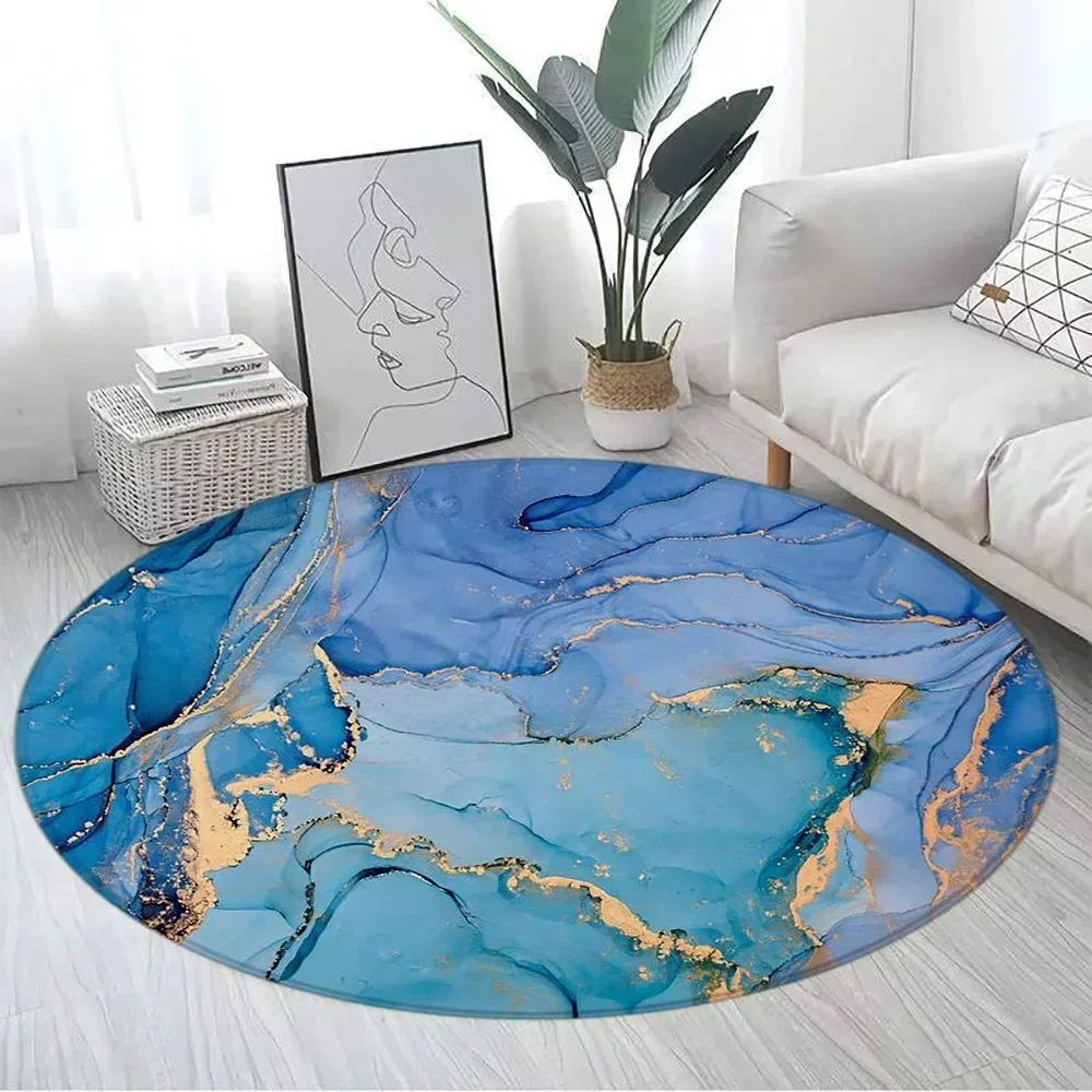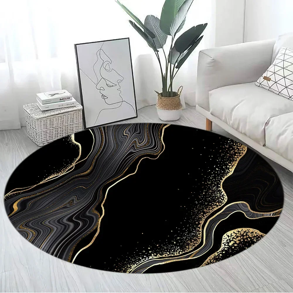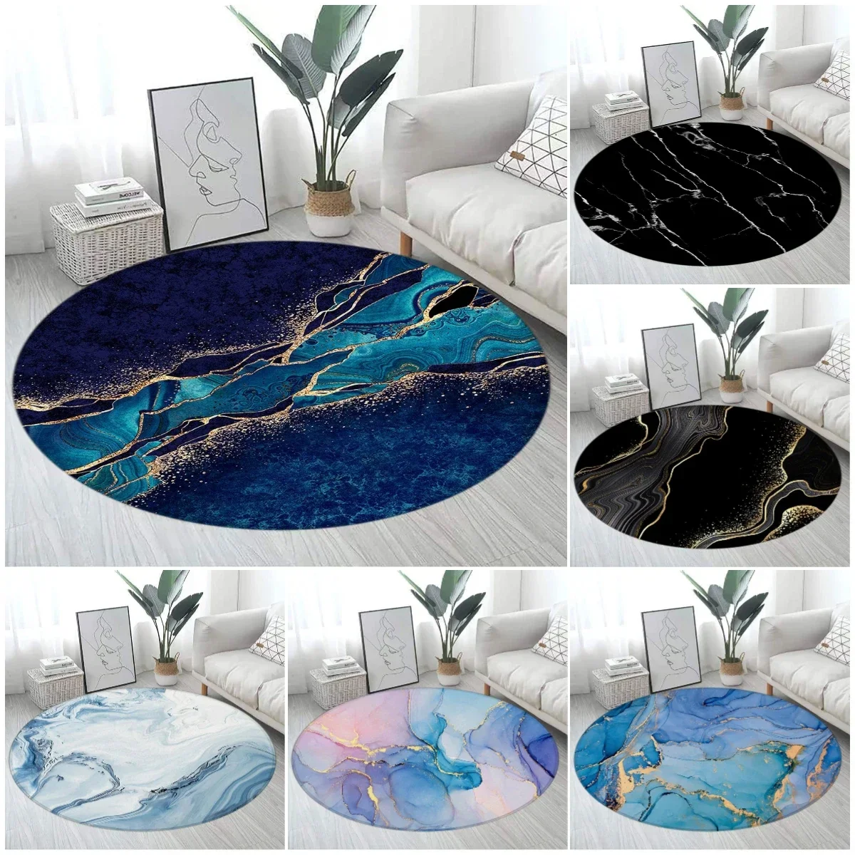 مجردة الرخام الأزرق جولة السجاد الذهب محكم نمط هندسي أسود المنزل السجاد غرفة المعيشة ديكور غرفة نوم أريكة البساط الحصير الكلمة