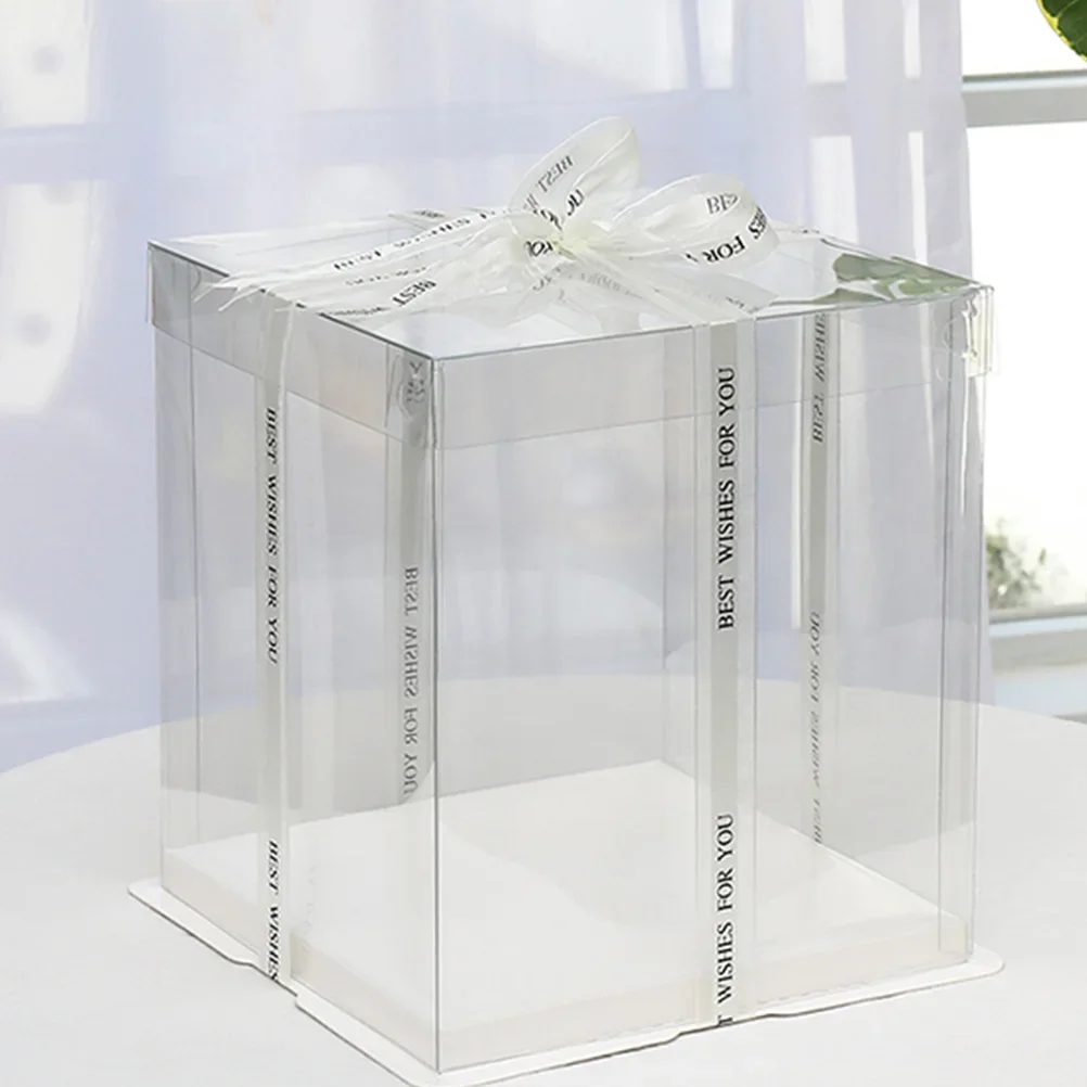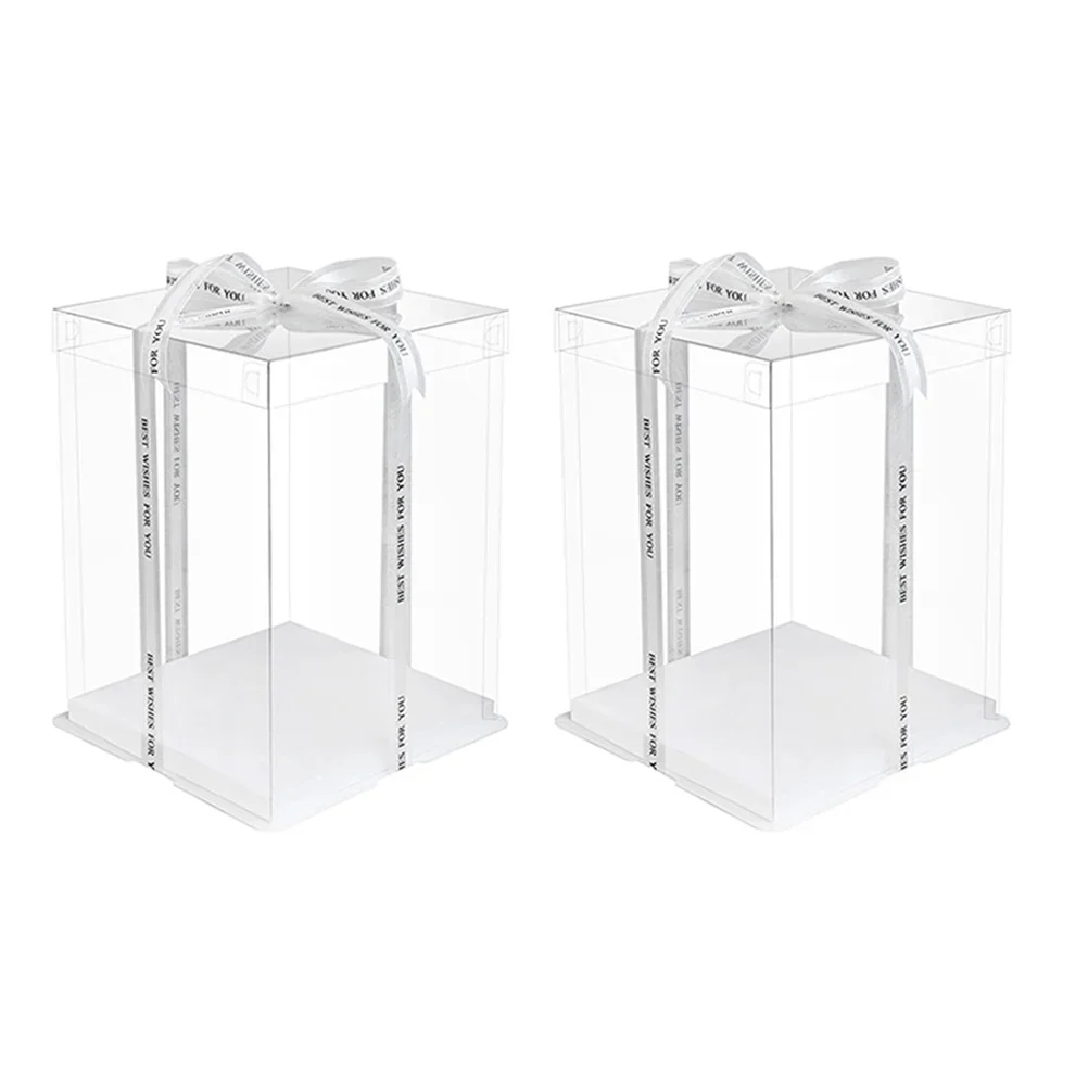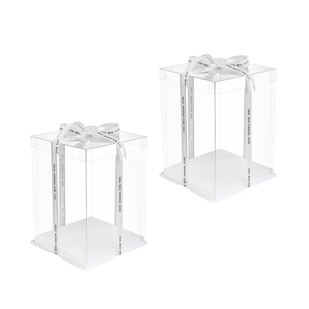 2 قطعة 3 في 1 كعكة عيد ميلاد حفلة هدية صناديق التعبئة والتغليف صناديق شفافة واضحة تغليف المجوهرات حقيبة مستحضرات التجميل كتاب الضيوف الزفاف