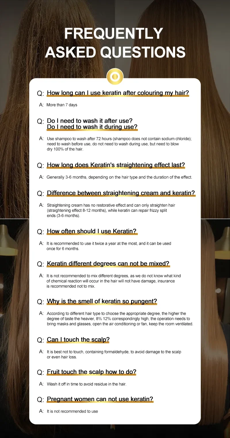 8 بعد 3 حركات أو 72 ساعة، يجب غسل الشعر بشامبو وبلسم PURC keratin اليومي.