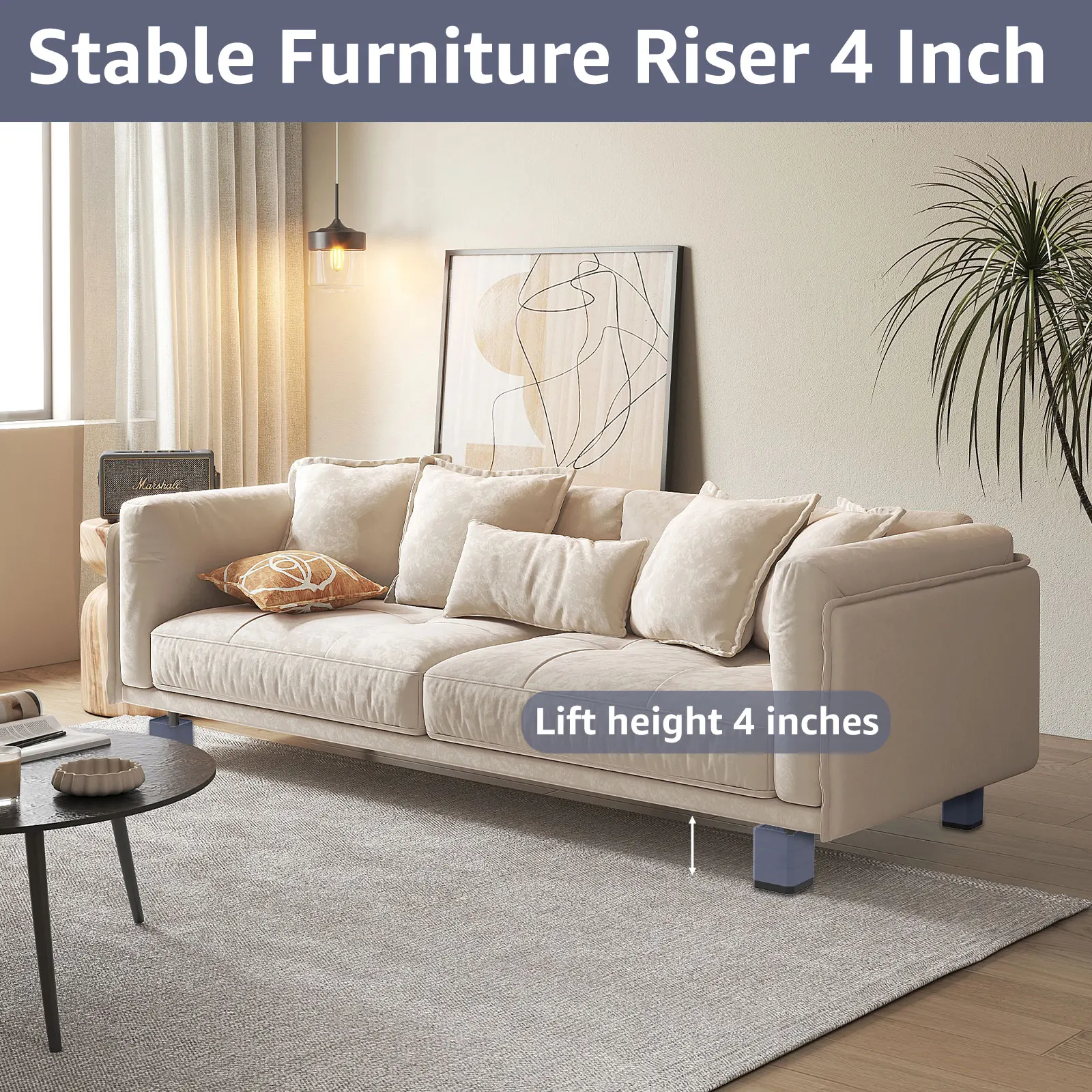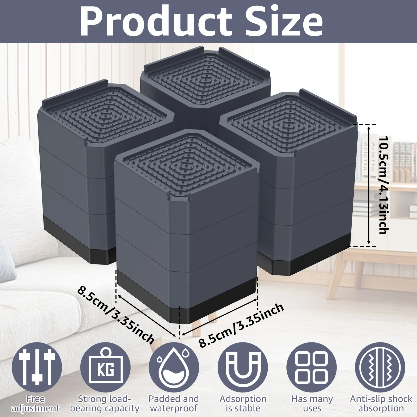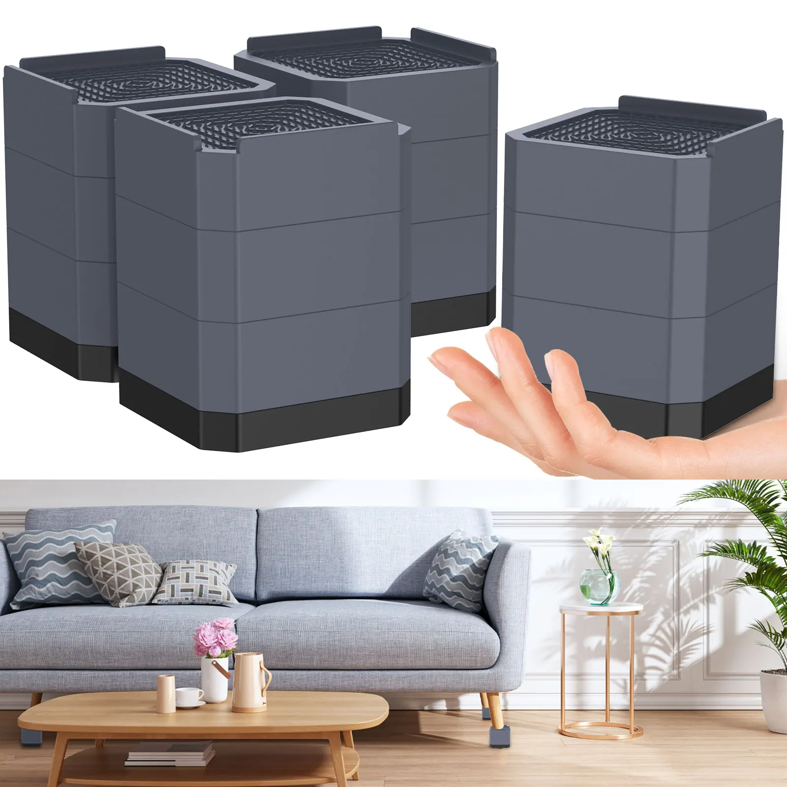 [مستقر وغير قابل للإنزلاق] يمكن لرافع الأثاث 4 بوصة أن يمسك بأرجل الأثاث بقوة ، ويمتص الصدمات ويمنع الانزلاق ، ويتجنب انزلاق الأثاث ، ويحمي الأرضية من الاحتكاك ويقلل الضوضاء