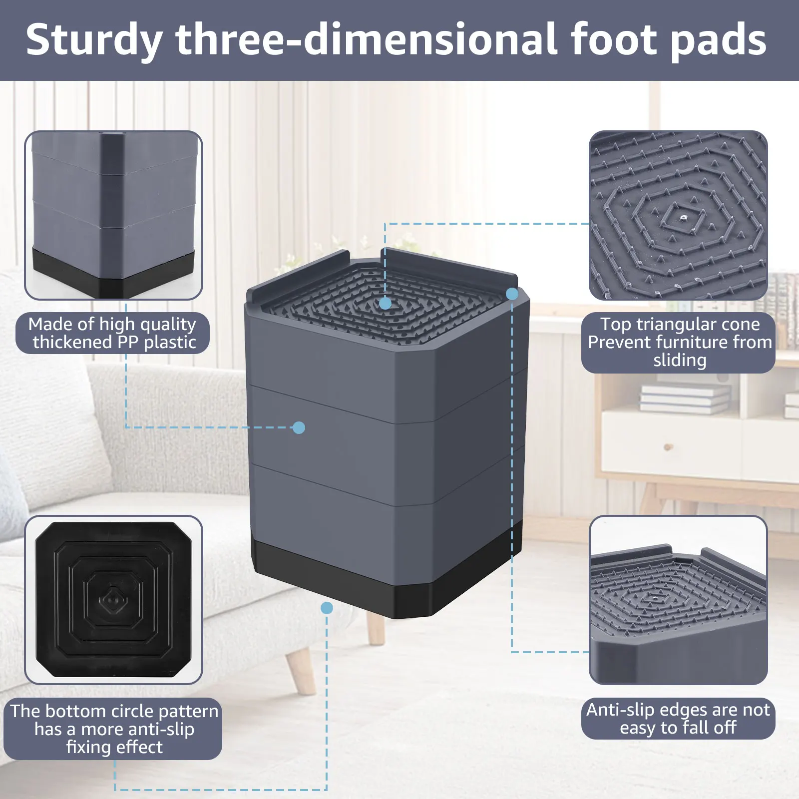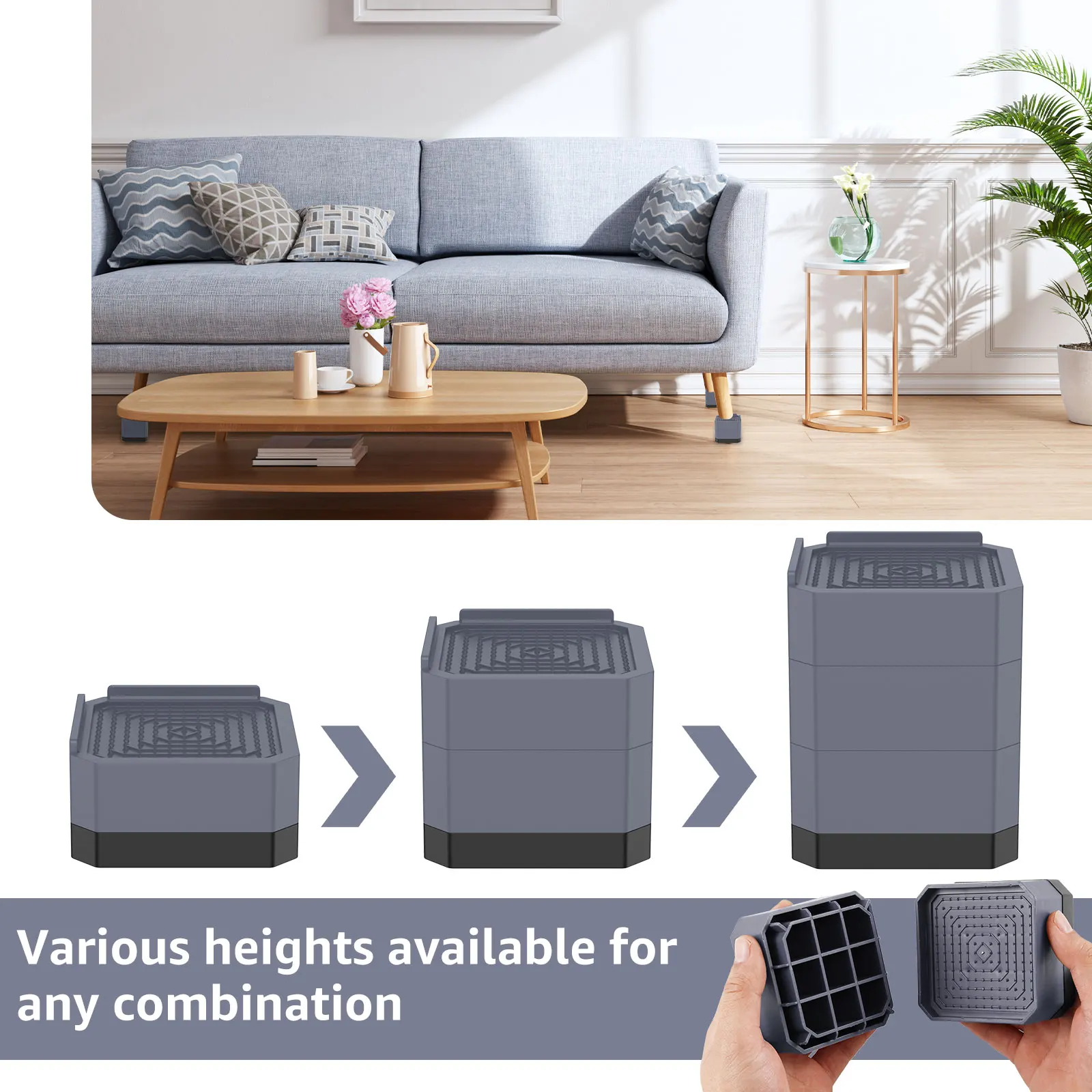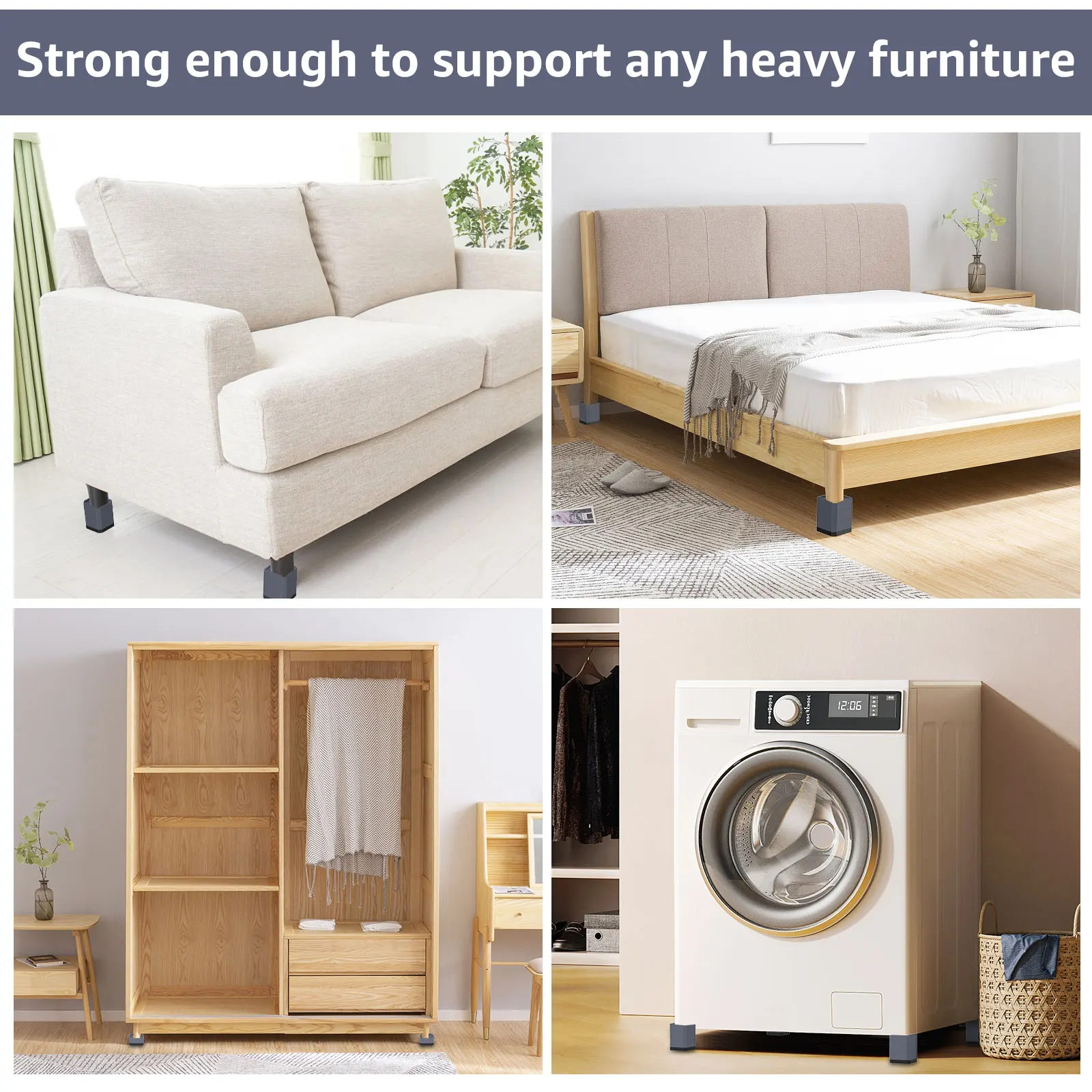 [مستقر وغير قابل للإنزلاق] يمكن لرافع الأثاث 4 بوصة أن يمسك بأرجل الأثاث بقوة ، ويمتص الصدمات ويمنع الانزلاق ، ويتجنب انزلاق الأثاث ، ويحمي الأرضية من الاحتكاك ويقلل الضوضاء