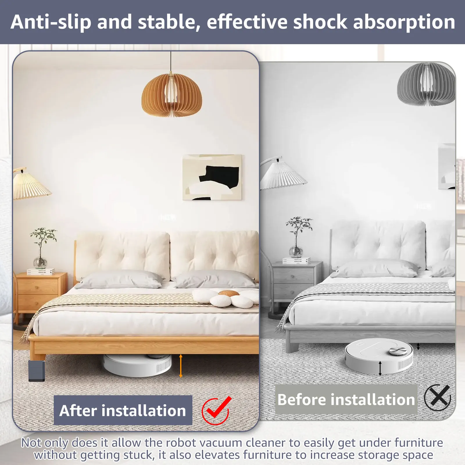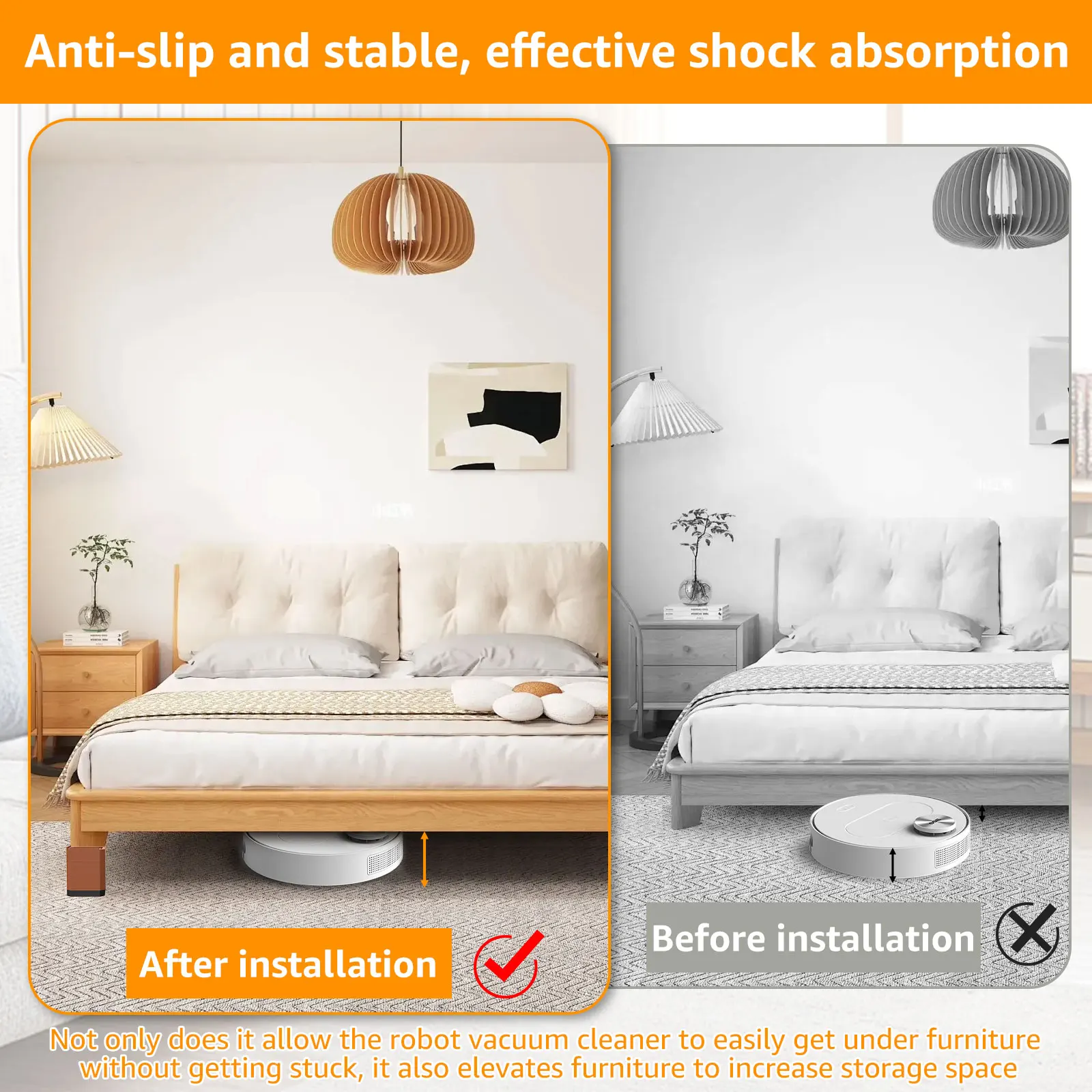 [متعددة الأغراض] هذه الممددات الساق الجدول لا تسمح فقط المكانس الكهربائية الروبوتية للوصول بسهولة إلى الجانب السفلي من الأثاث دون أن تتعثر ، فإنها يمكن أن ترفع الأثاث لمزيد من مساحة التخزين ، يمكن أن تجعل كبار السن أو أطول الناس أسهل في الاستيقاظ من الأريكة ، ويمكنهم حتى رفع رأس السرير للمساعدة في مشاكل الارتجاع الليلي.