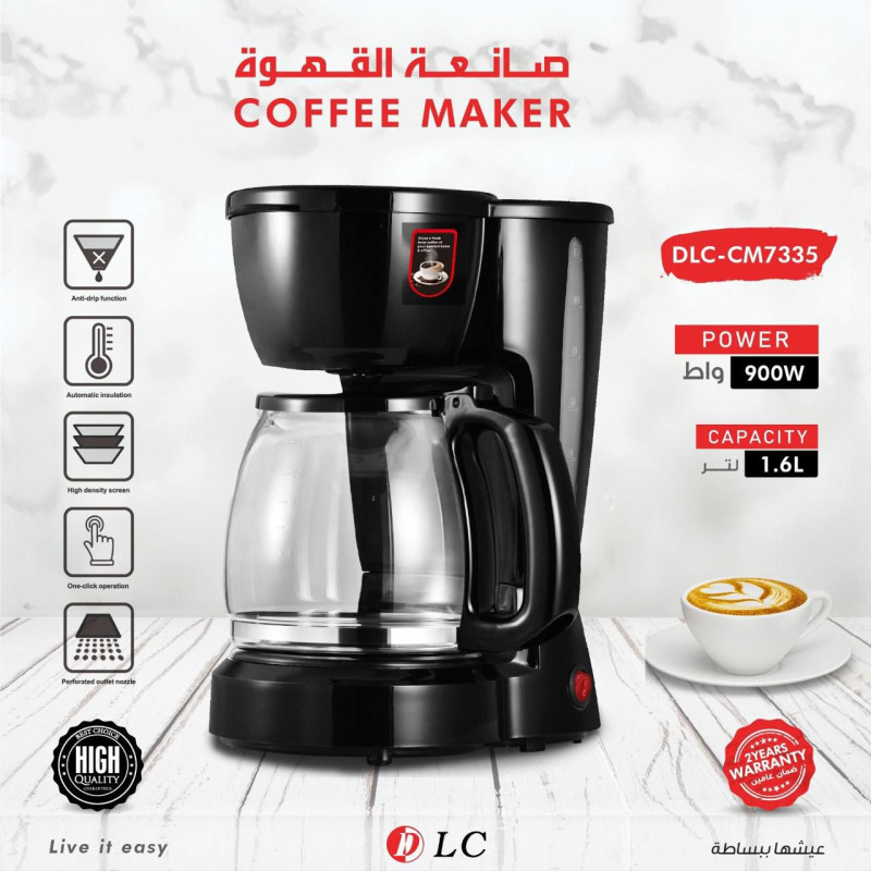 اصنع قهوتك المفضلة بكل سهولة مع ماكينة القهوة DLC-CM7335 التي تعمل بالتقطير. تصميم عملي وسعة كبيرة تكفي لتحضير عدة أكواب دفعة واحدة، مثالية للاستخدام المنزلي أو المكتبي.