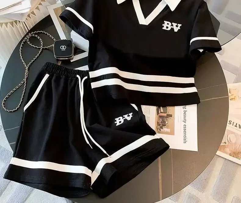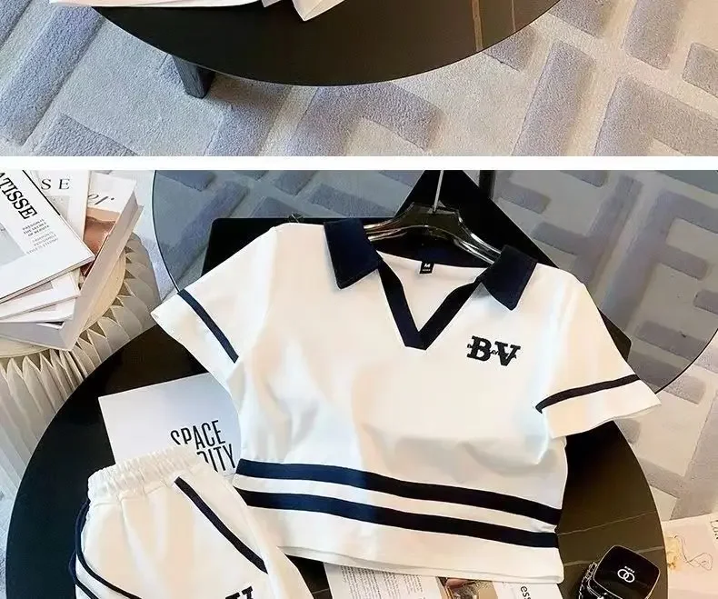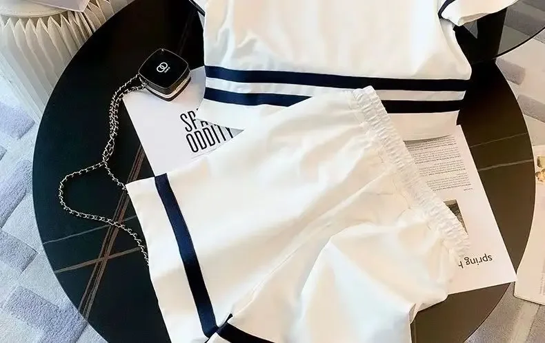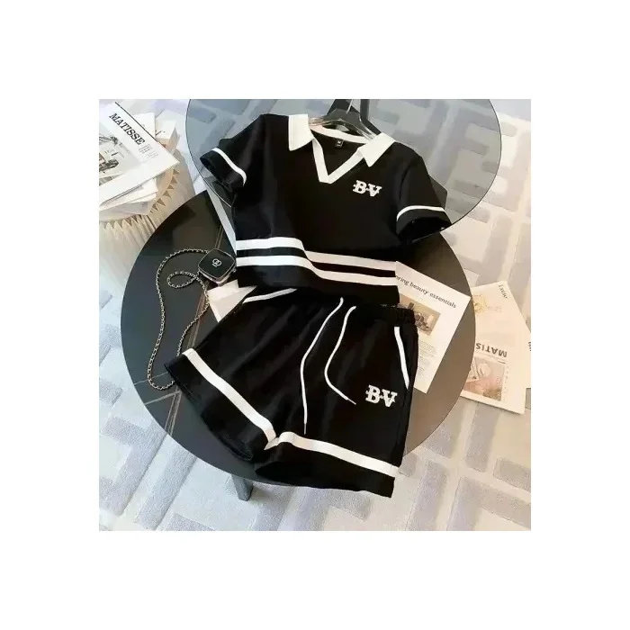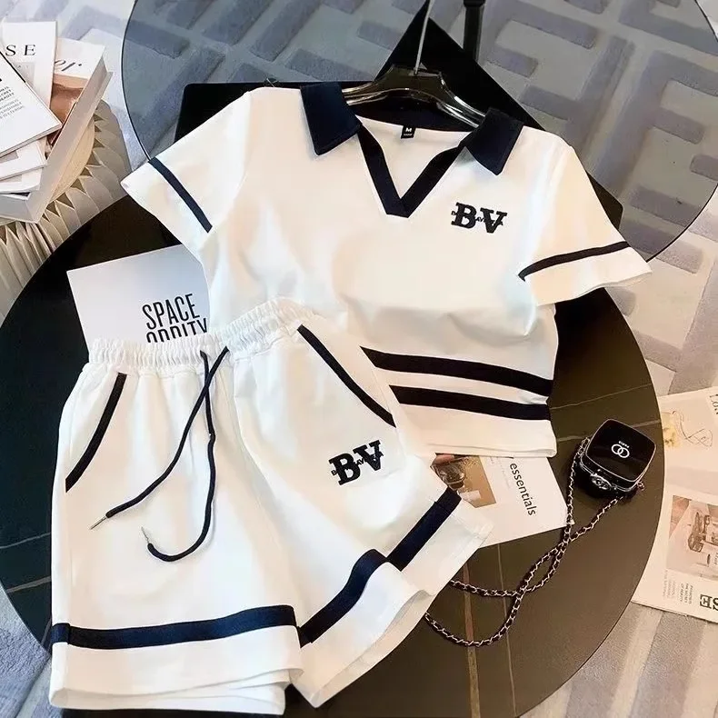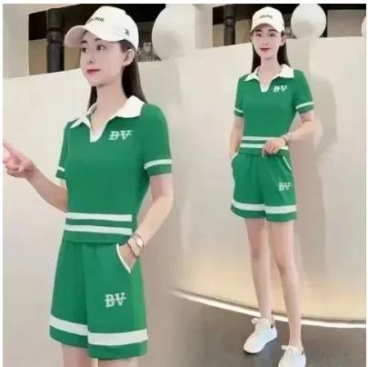 سلسلة الملح نمط الشارع رياضي المرأة صيف 2025 المألوف تعيين العمر الأوروبي السراويل غير رسمية قطعتين مجموعة ألياف البوليستر