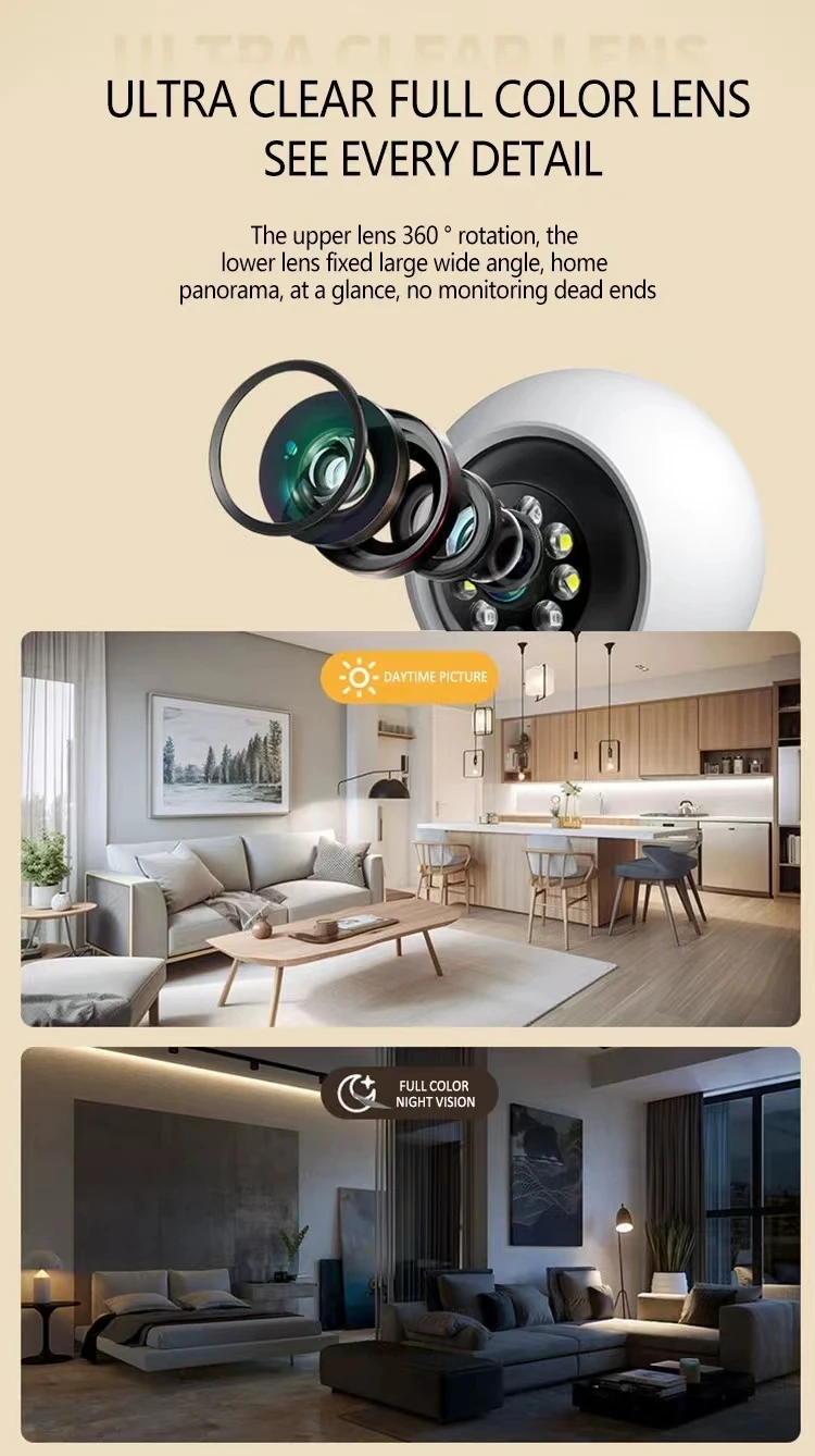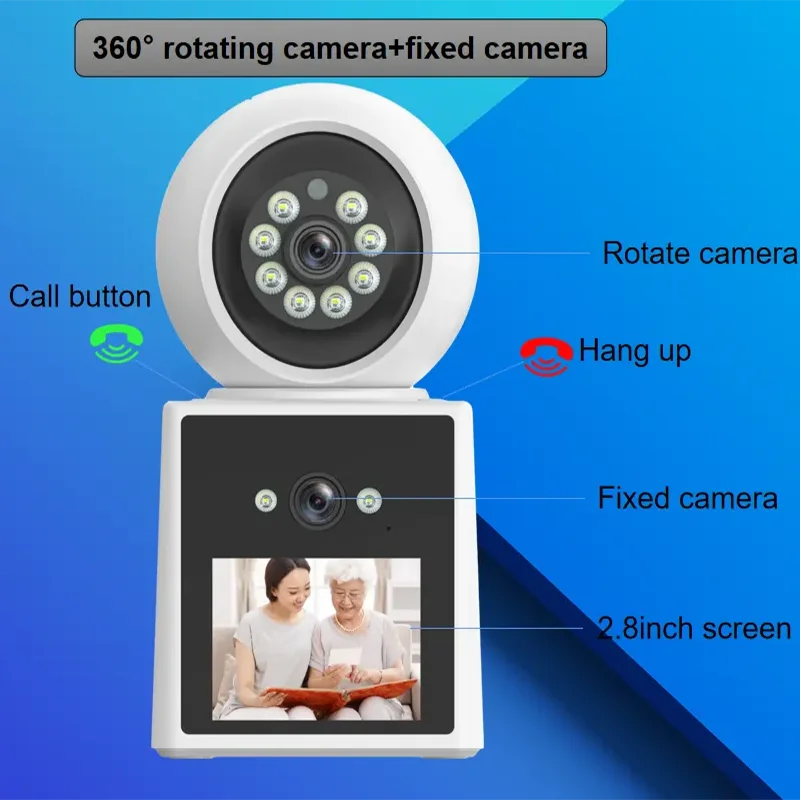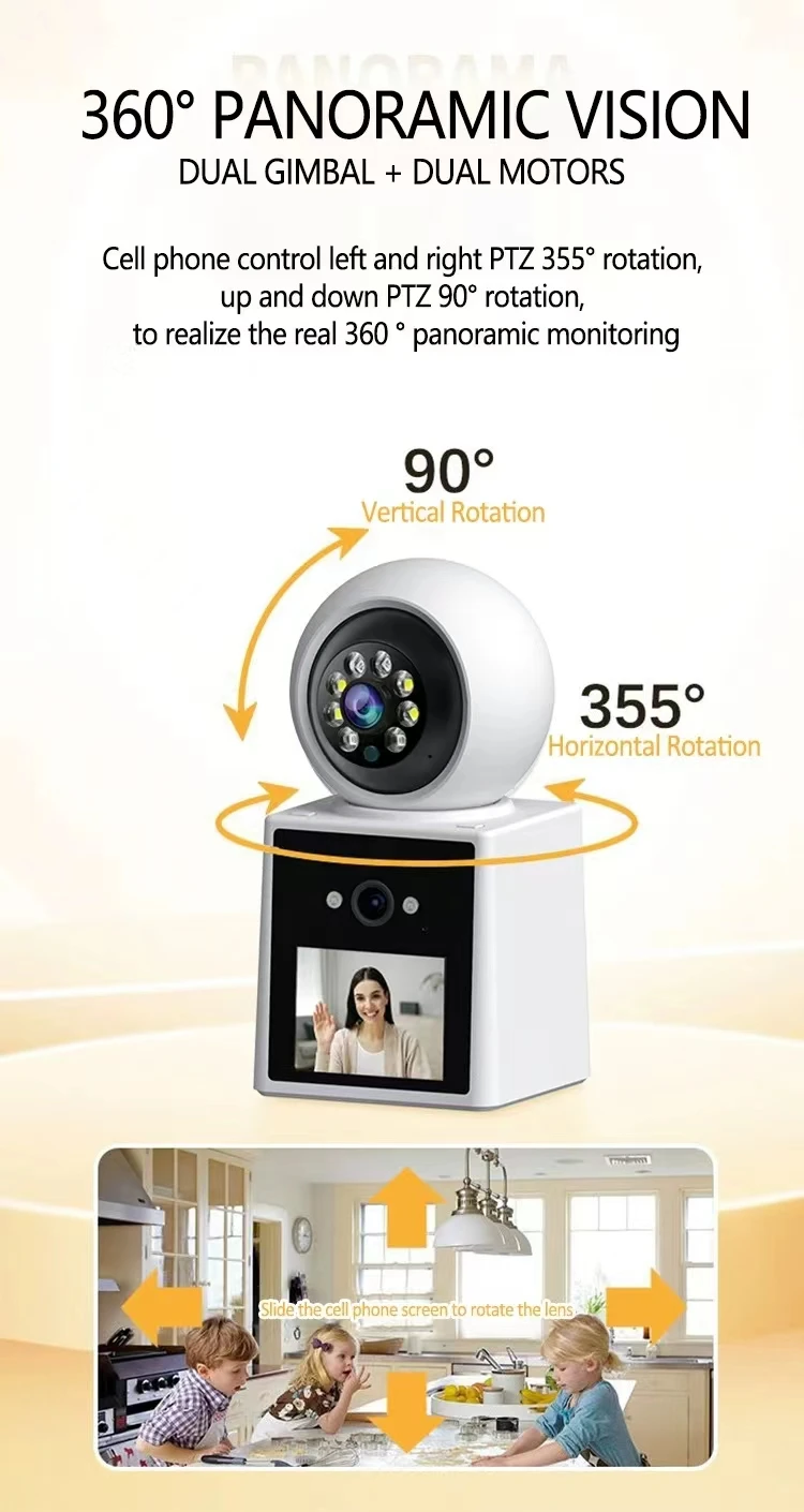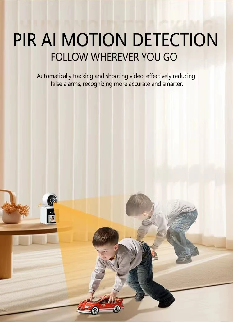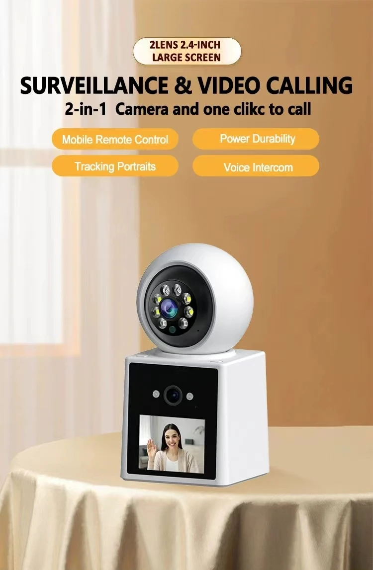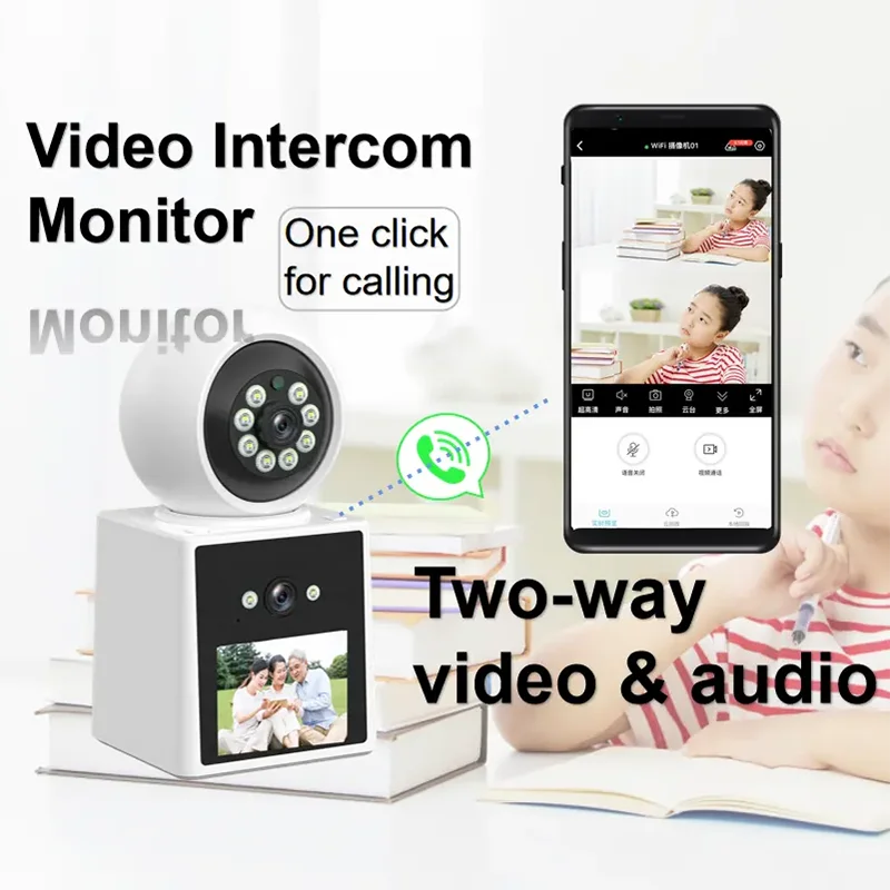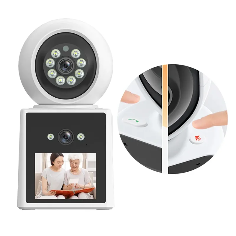 كاميرا PTZ IP مع عدسة مزدوجة ، تتبع تلقائي ، 2 ميجابكسل ، شاشة LCD ، كاميرا HD داخلية ، منزل ذكي ، صوت ثنائي الاتجاه ، كاميرا مكالمات فيديو واي فاي ، رؤية ليلية ملونة