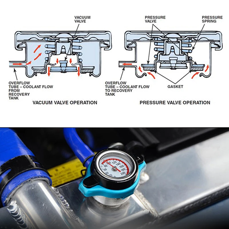 سيارة دراجة نارية التصميم الحراري غطاء المبرد غطاء خزان مقياس درجة حرارة الماء مع فائدة آمنة 0.9 بار/ 1.1 بار/1.3 بار