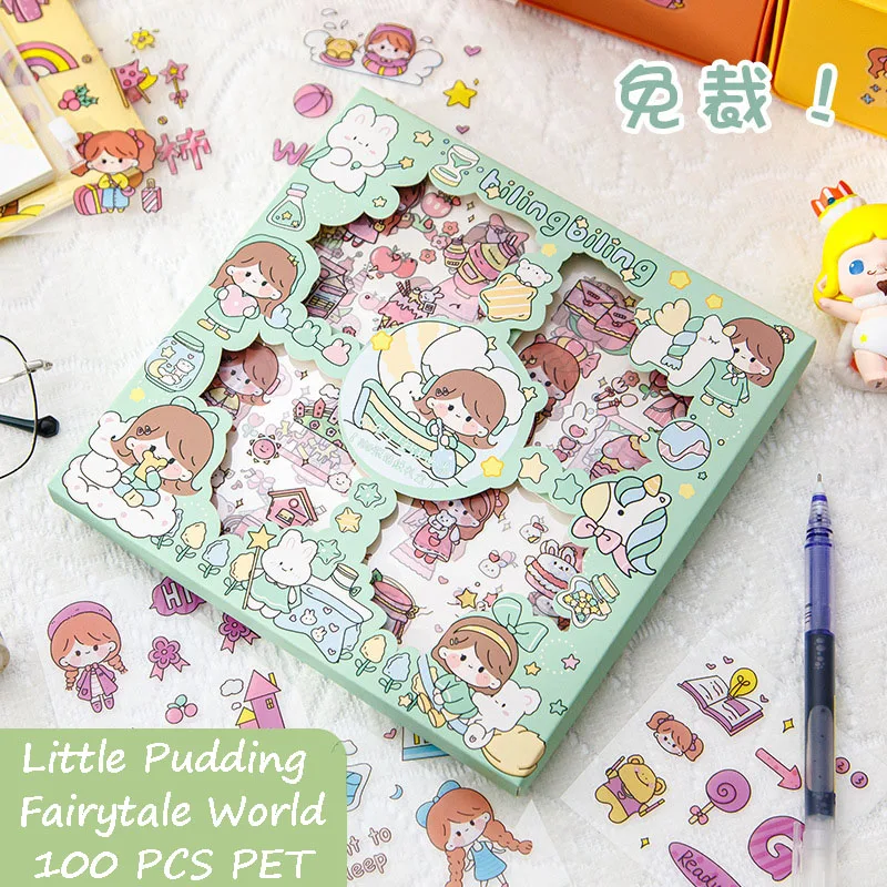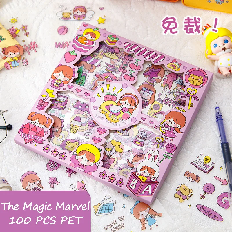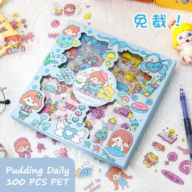 100 قطعة ملصقات Kawaii لطيف الكرتون كتيب ملصقات 8*8 سنتيمتر PET صندوق مقاوم للماء ملصق القصاصات الزخرفية DIY القرطاسية