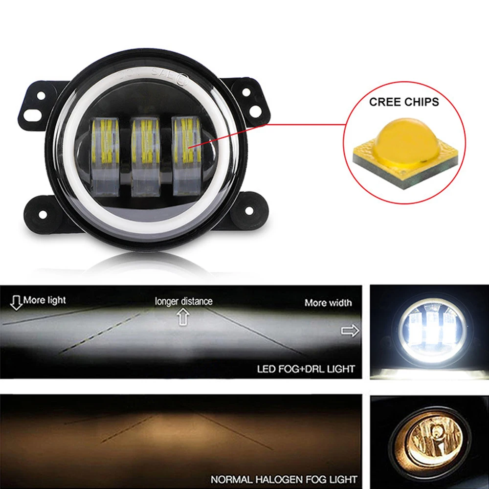 4 بوصة عيون الملاك LED الضباب الخفيف 12 فولت 24 فولت سيارة الجبهة فوجليت مصباح تلقائي DRL القيادة مصباح الضباب للطرق الوعرة 4X4 لادا فيار بريورا O
