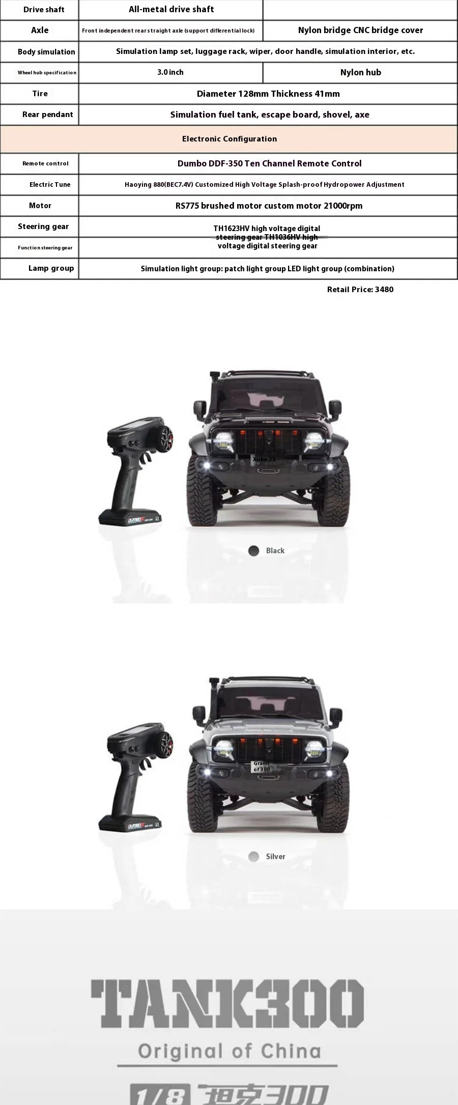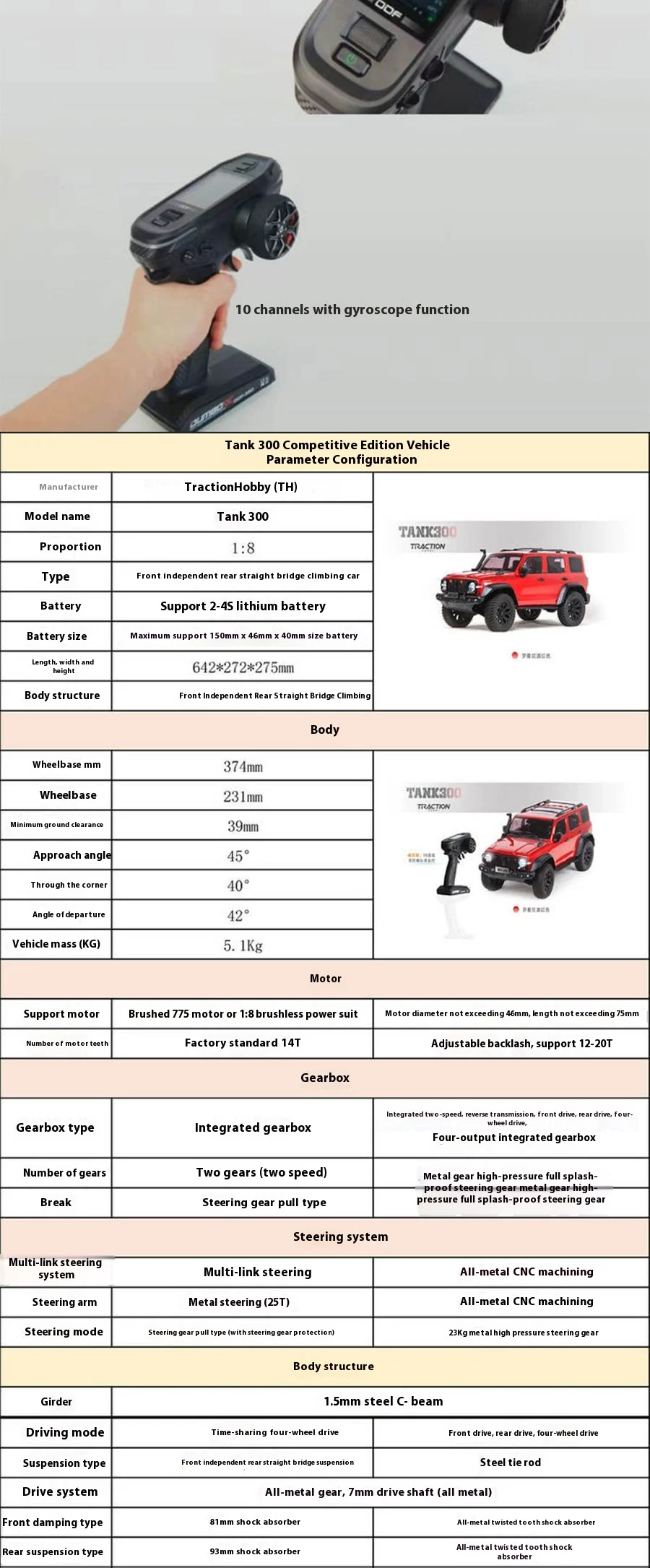 كم الرعد 1/8 خزان 300 طبعة تنافسية محاكاة Rc التحكم عن بعد نموذج كهربائي مركبة تسلق على الطرق الوعرة مركبة هدية