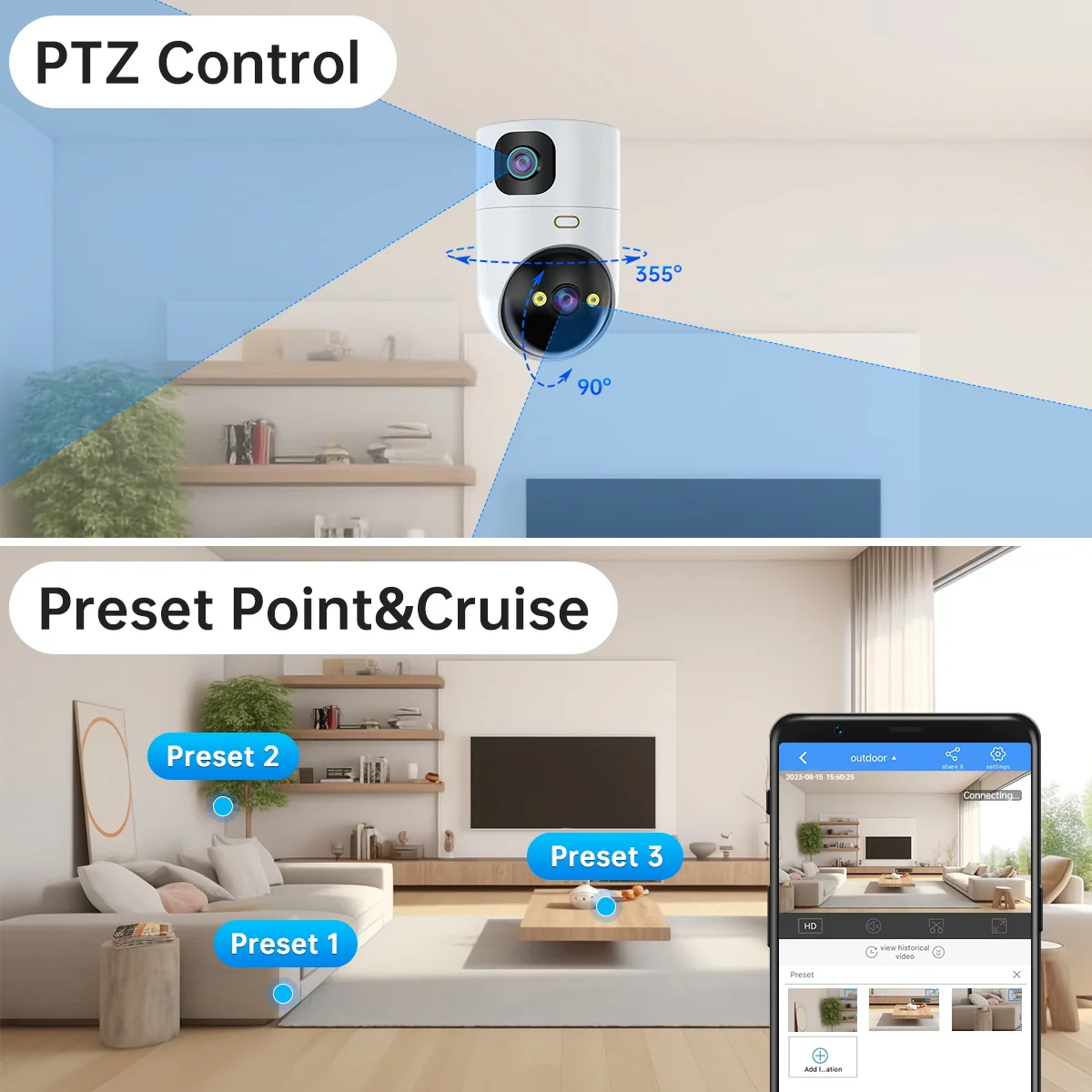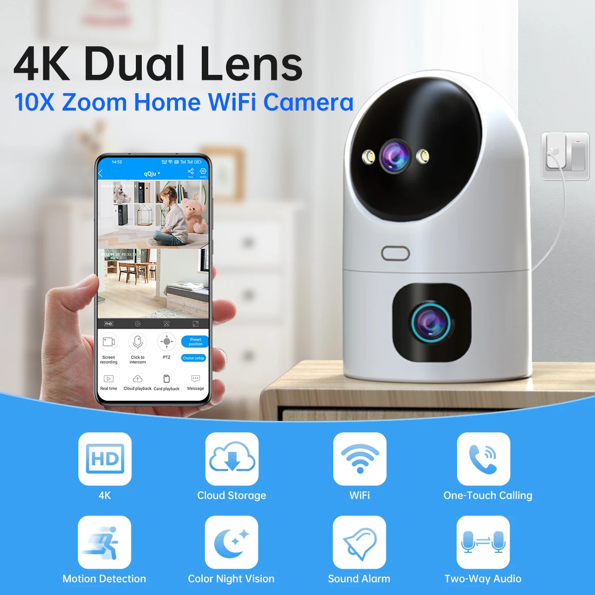 • عدسة مزدوجة :تحتوي الكاميرا على عدستين توفر مجال رؤية أوسع وإدراكا أفضل للعمق ، مما يضمن لقطات واضحة وتفصيلية. • تتبع تلقائي :تتبع ...