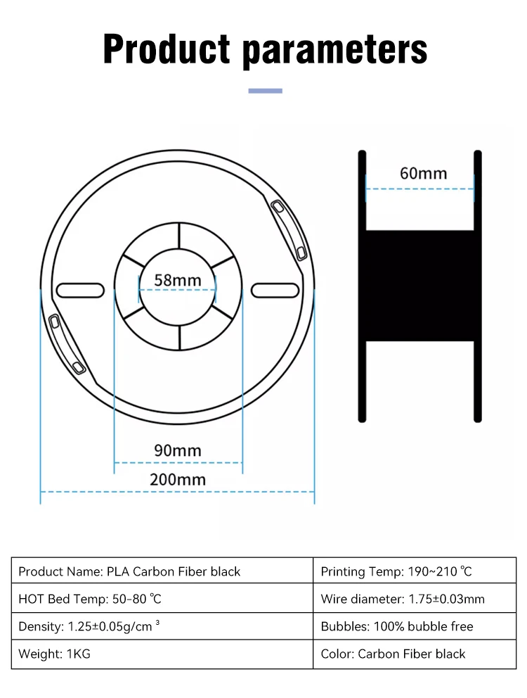 ألياف الكربون PLA/PETG خيوط طابعة ثلاثية الأبعاد 1 كجم 1.75 مللي متر طباعة سريعة PLA-CF خيوط PETG عالية القوة من ألياف الكربون لـ Bambu/K1C