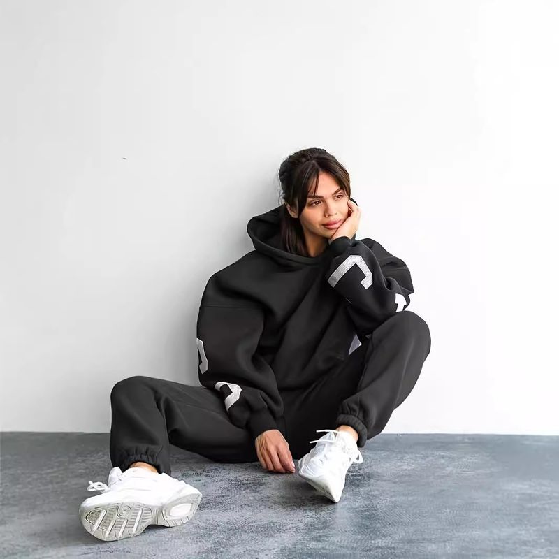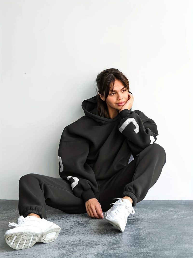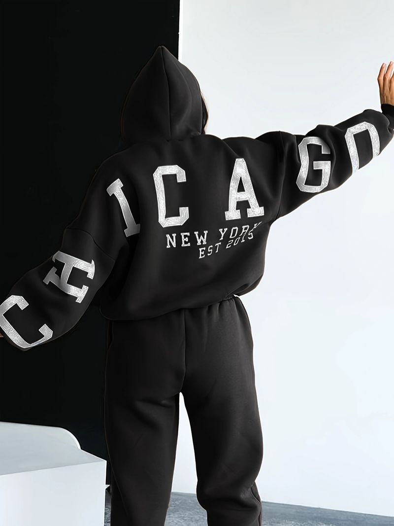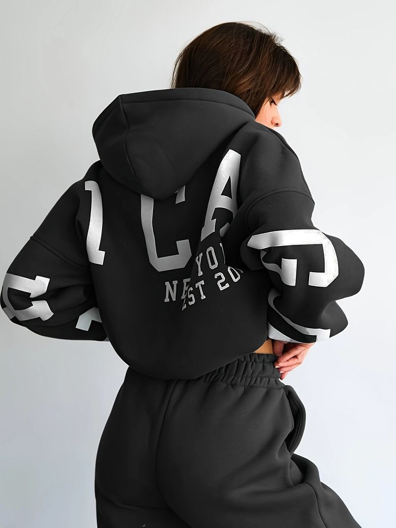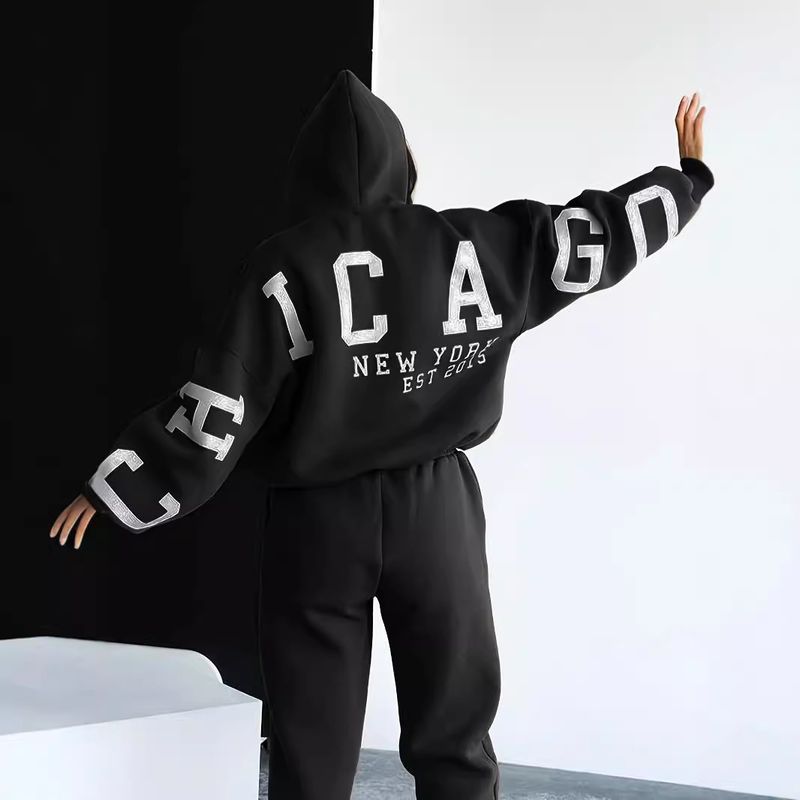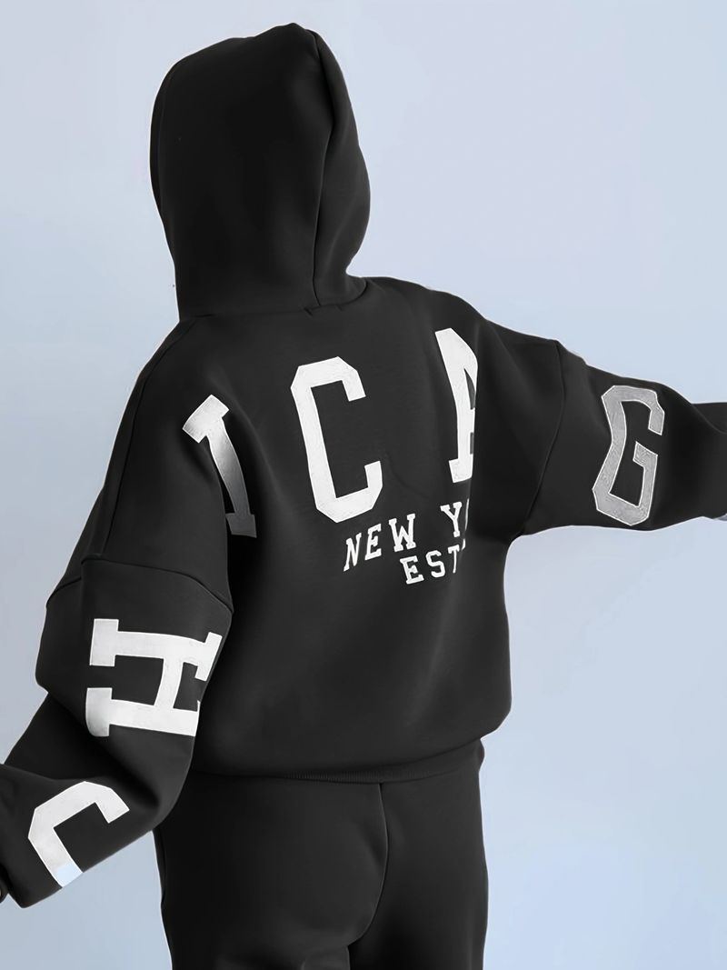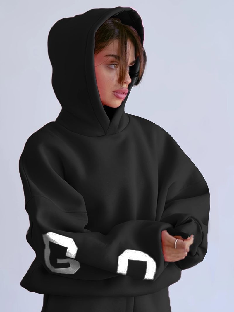 خليفة طباعة حروف خلفية 250 جرام فليس هودي ذو قصّة فضفاضة