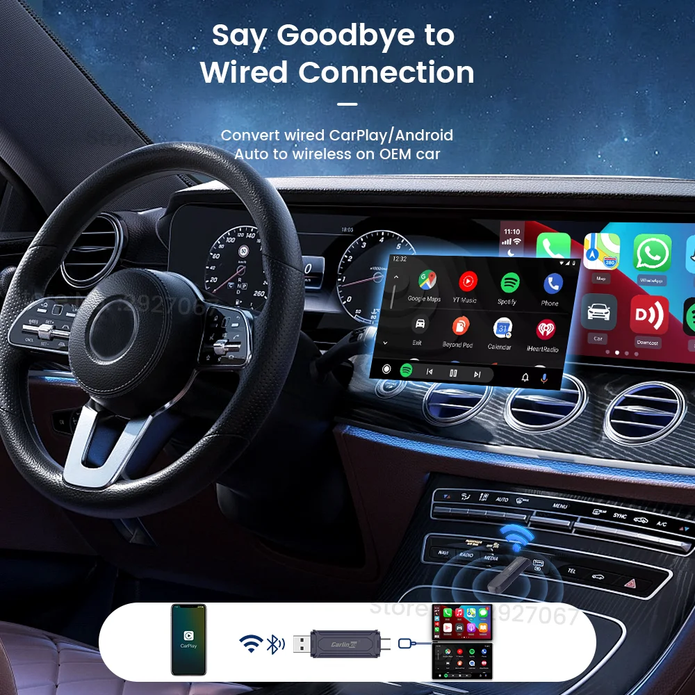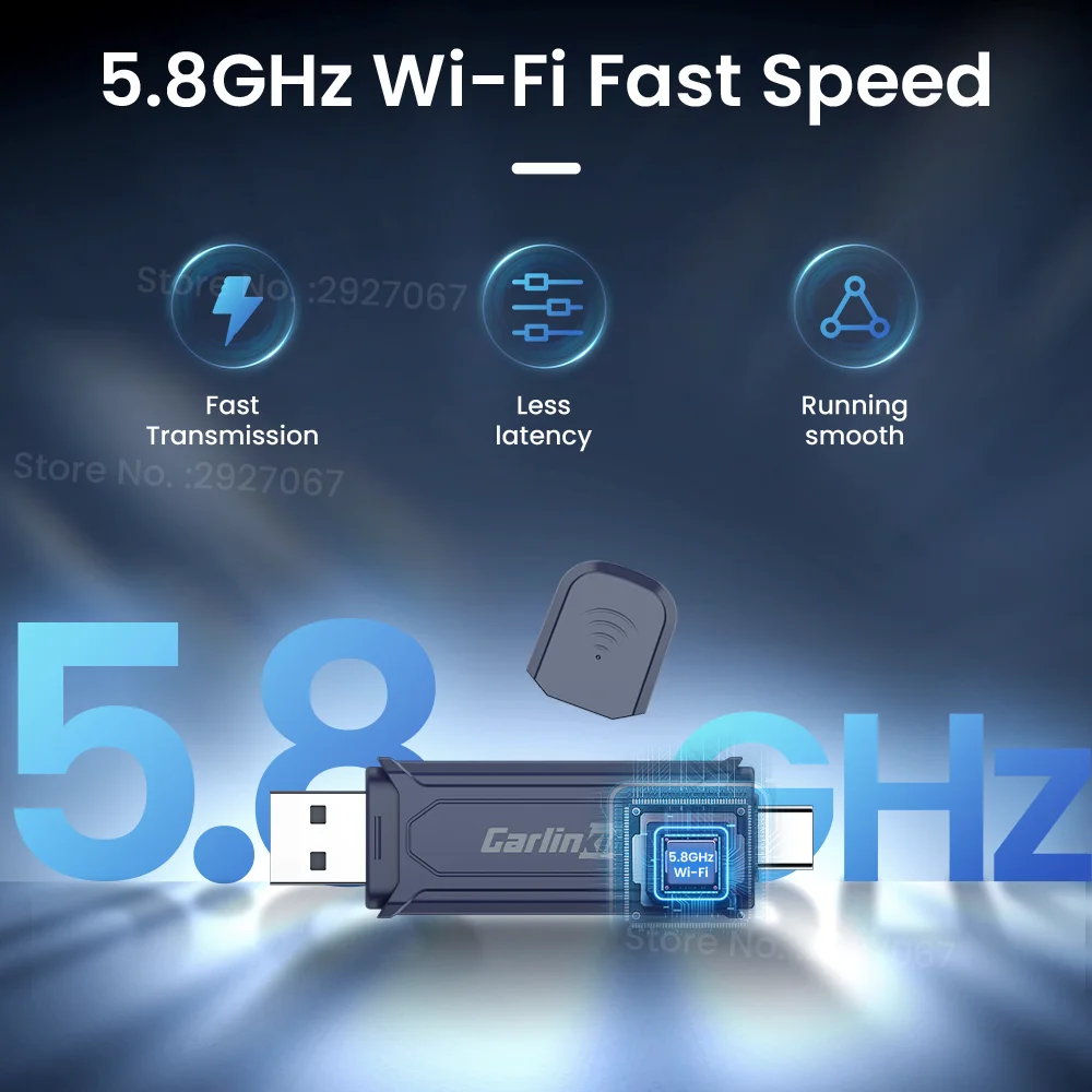 معدل نقل 5.8 جيجا هرتز وسرعة نقل البيانات السريعة وزمن الوصول المنخفض يجعل من السهل على المستخدمين الاتصال بمركبات Android Auto أو Apple CarPlay الحالية التي تدعم USB لاسلكيًا، مما يجعل من السهل الوصول إلى التطبيقات باستخدام شاشة السيارة.
