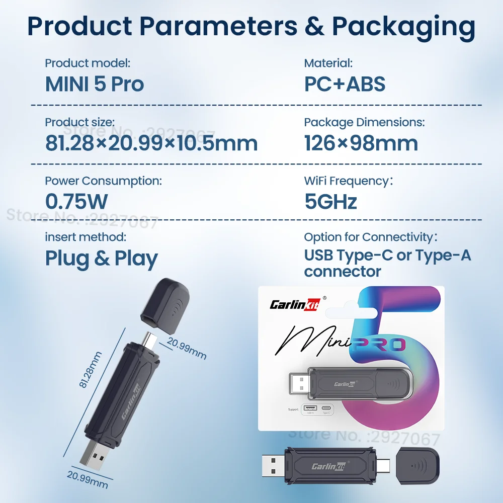 CarlinKit Mini5 Pro Wireless CarPlay Android Auto Box للسيارة الأصلية