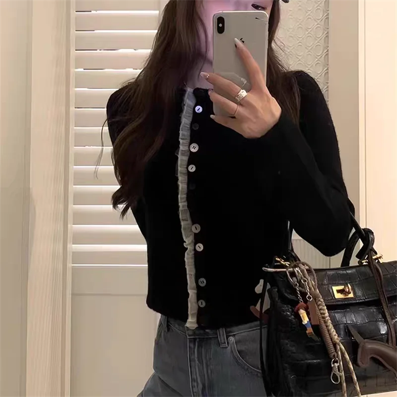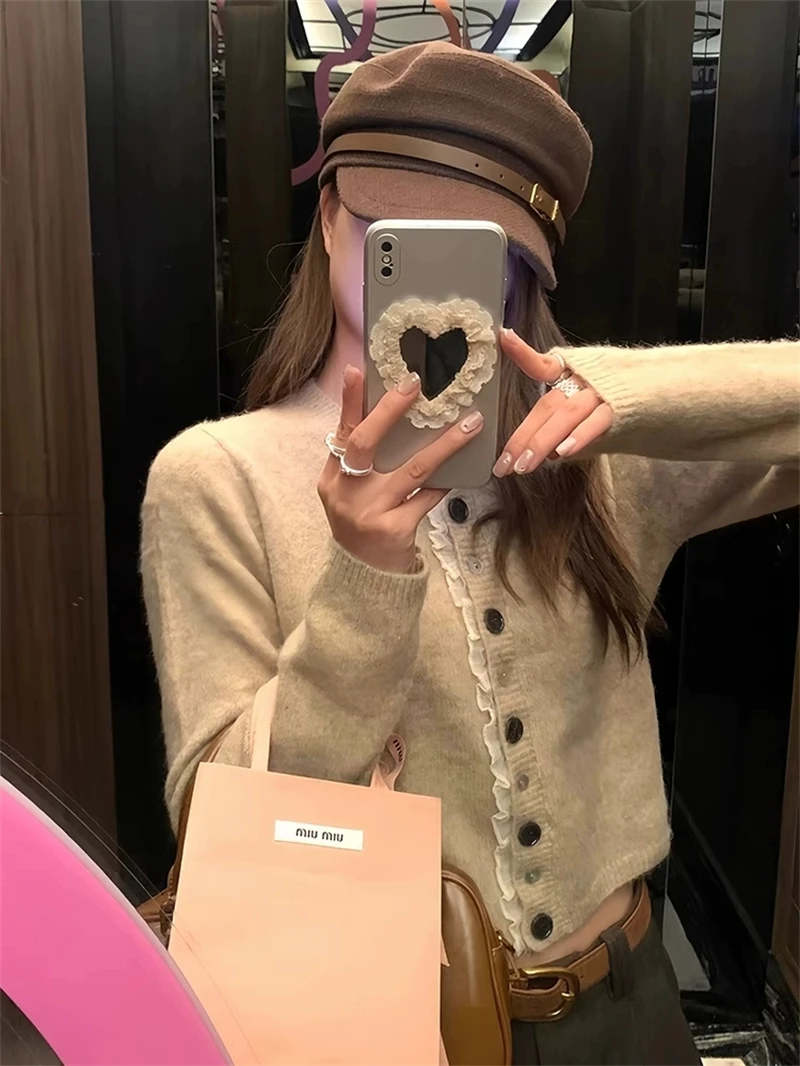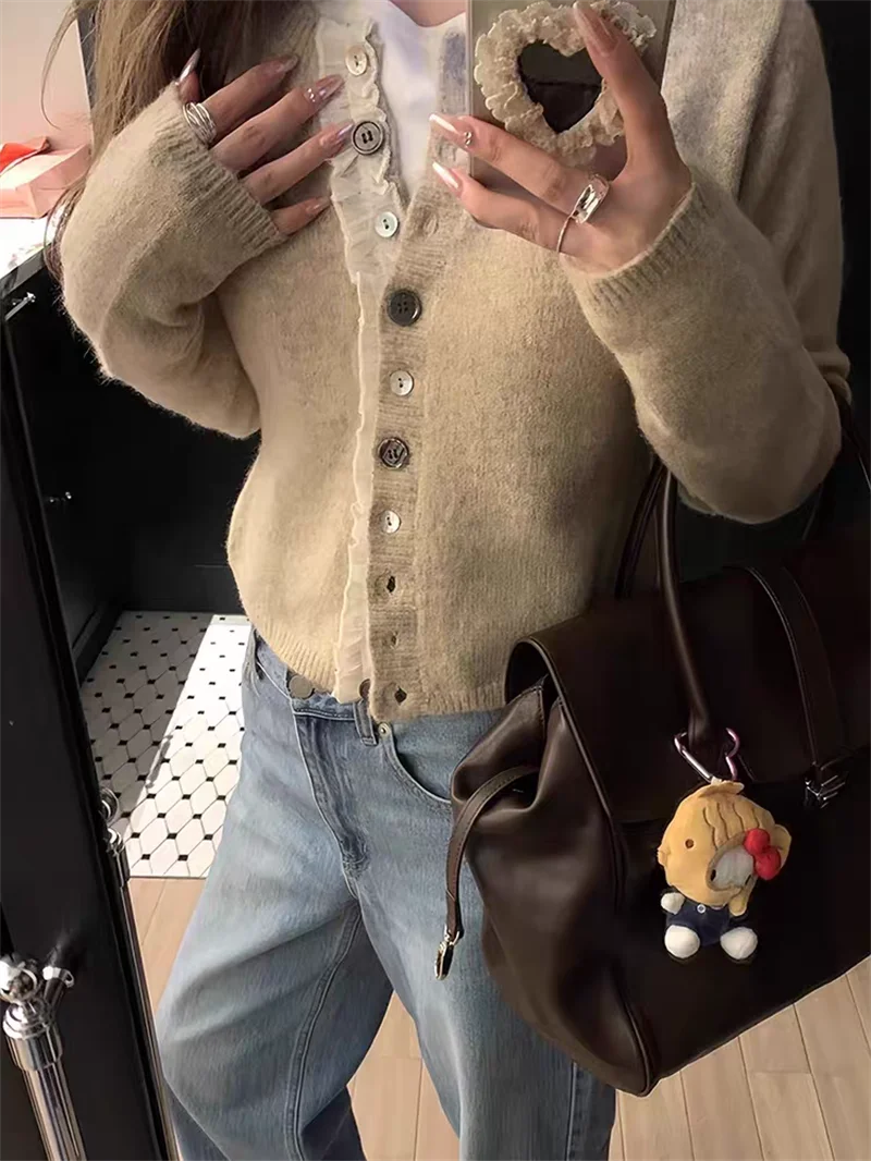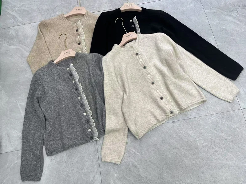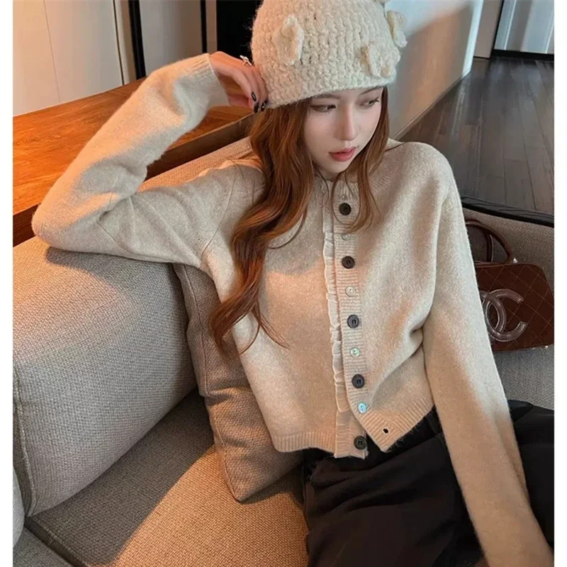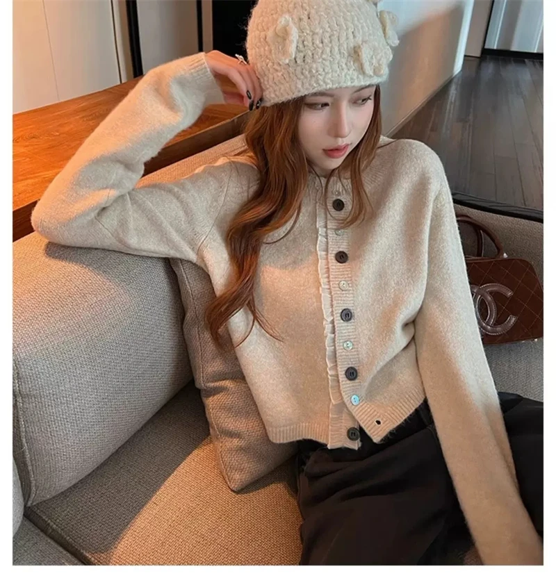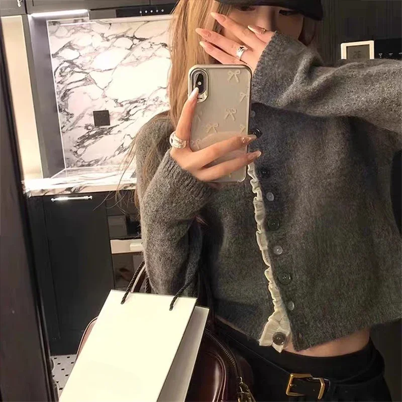 المرأة الجديدة الدانتيل الربط سترة مشغولة من الصوف طويلة الأكمام سترة لينة المرأة عارضة قصيرة مكتب تنوعا أعلى