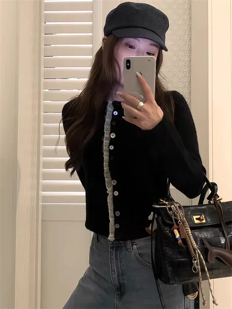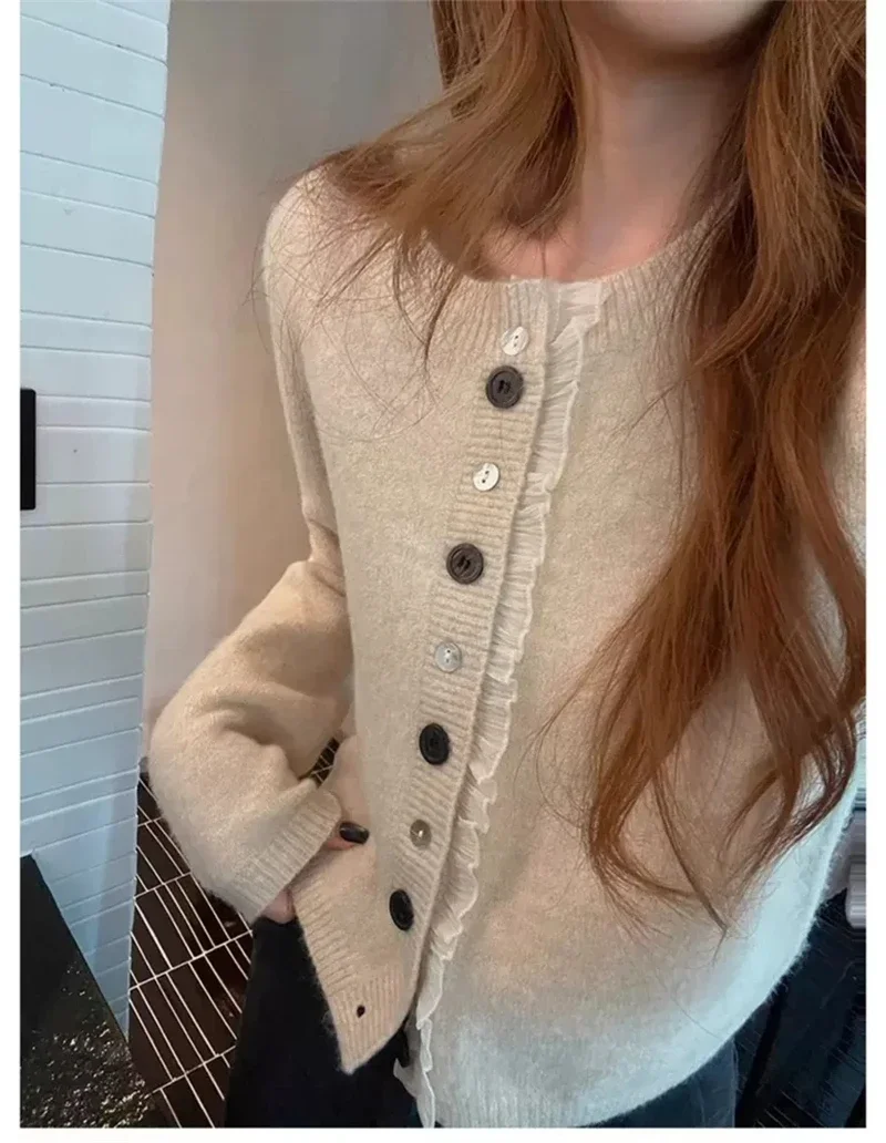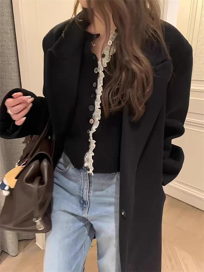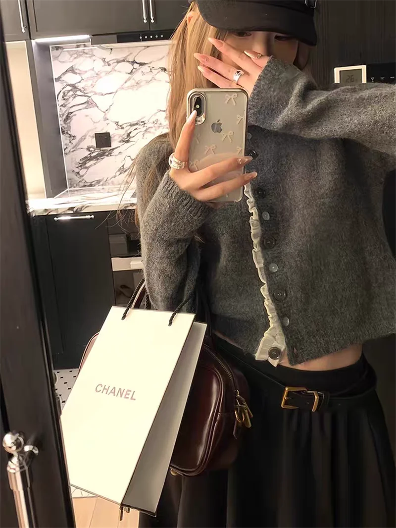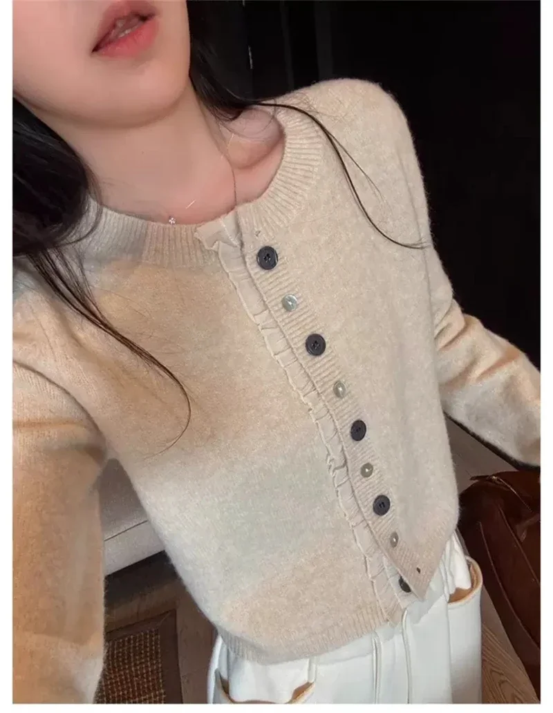 المرأة الجديدة الدانتيل الربط سترة مشغولة من الصوف طويلة الأكمام سترة لينة المرأة عارضة قصيرة مكتب تنوعا أعلى