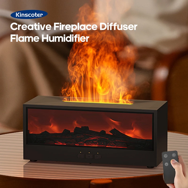 محاكاة الموقد رائحة الناشر الضروري النفط لهب الهواء المرطب التحكم عن بعد أجواء ملونة ضوء الليل هدية الإبداعية