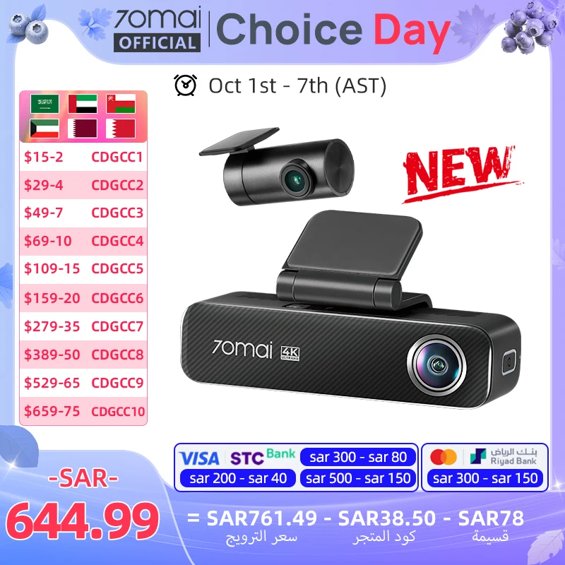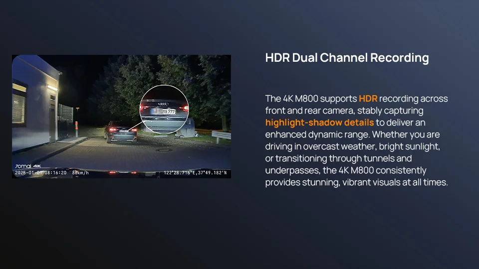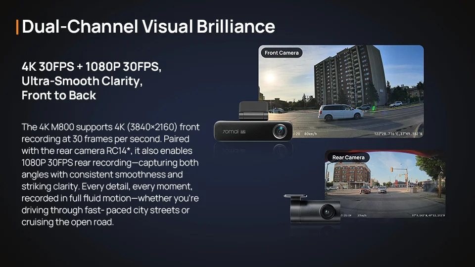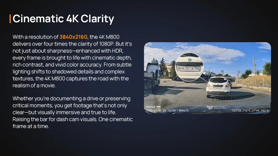 70mai Dash Cam 4K M800 2160P eMMC مدمج 128GB GPS ADAS يدعم 24H Parking Guard 4G إصدار مطور متوافق. من 70mai M500